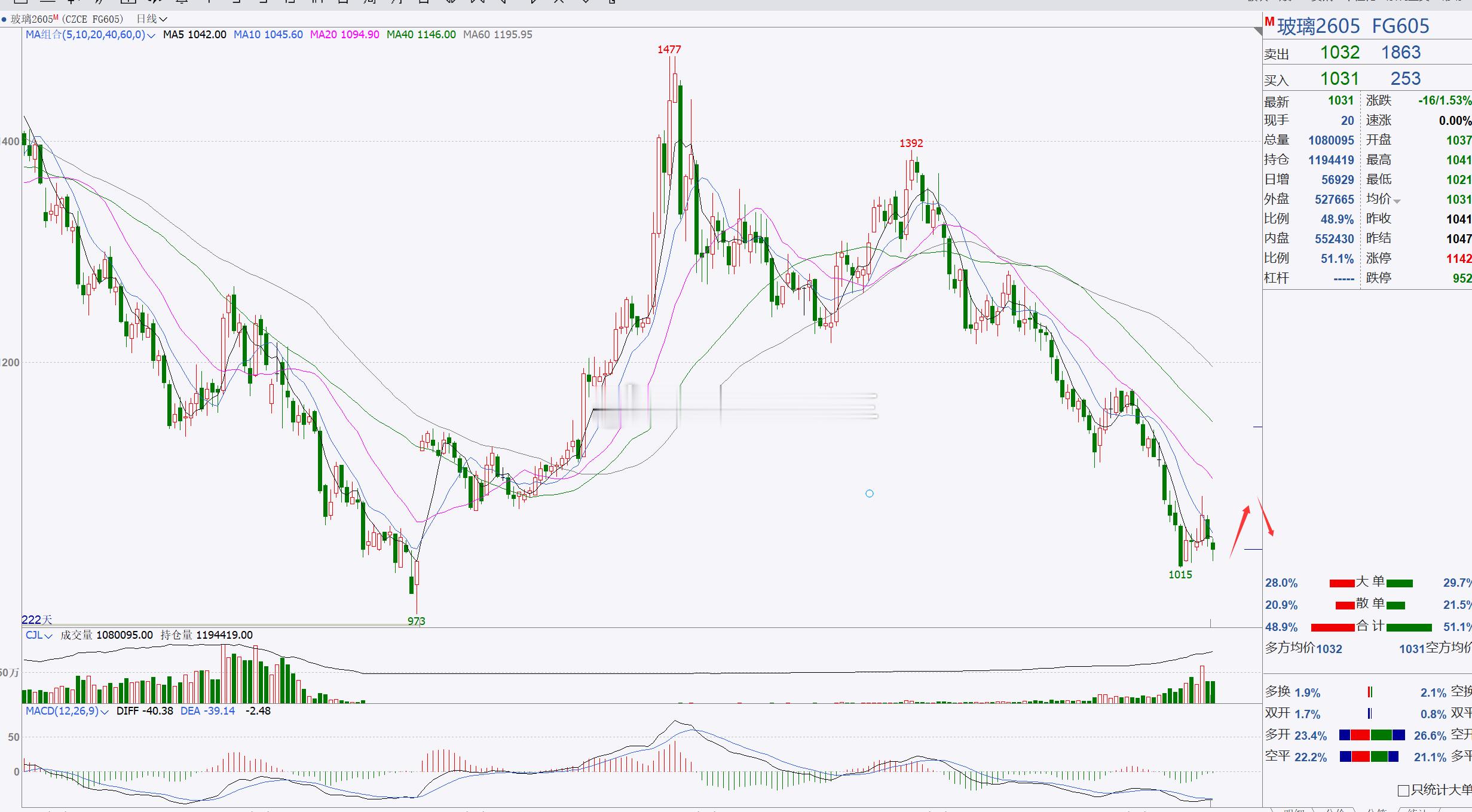 1、【纯碱2605】纯碱建议关注1200突破情况!纯碱冲高回踩,后市我们重点关注1123前夕低点,若此位置未能跌破延续,建议短线跟进,可先看反弹修正,稳健者建议先观望;例如多关注1150—1140附近,上方先关注1200附近;空关注1200突破情况再择机考虑介入;(建议仅供参考,具体操作以开盘点位实时跟进,据此操作风险自担)2、【玻璃2605】玻璃关注1000一带,短线跟进!玻璃日内伴随着短期反弹调整,但是整体行情处于低位横盘,后市我们重点关注1000一带,若此位置未能跌破延续,建议短线跟进,看短期反弹调整,但不过分看空间;例如多关注1020—1010附近,上方先关注1060一带,突破再关注1080一带;空关注1060、1080这两个位置再择机考虑介入;(建议仅供参考,具体操作以开盘点位实时跟进,据此操作风险自担)纯碱 玻璃