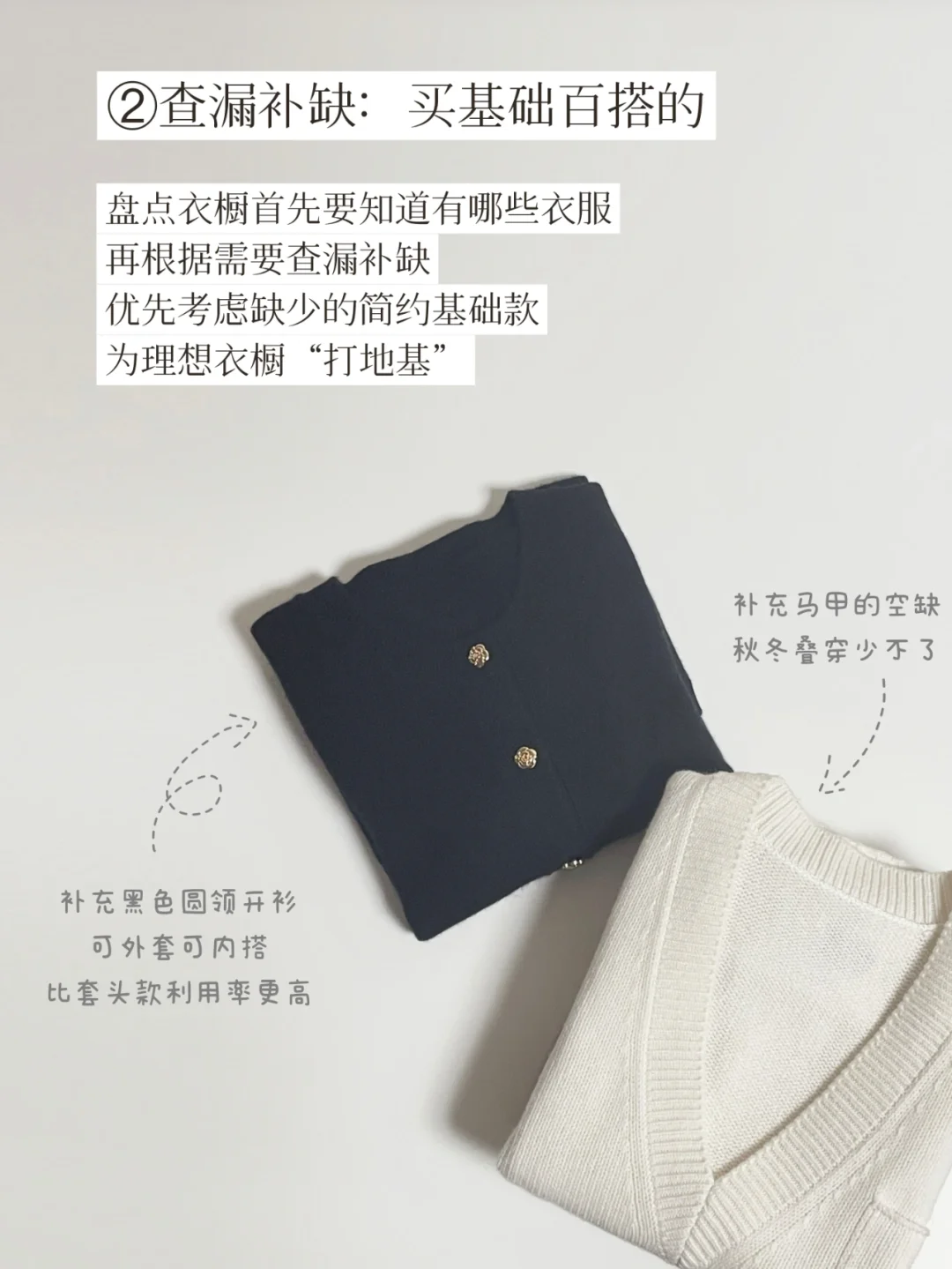 盘点衣橱知道有哪些衣服,再根据需要查漏补缺。