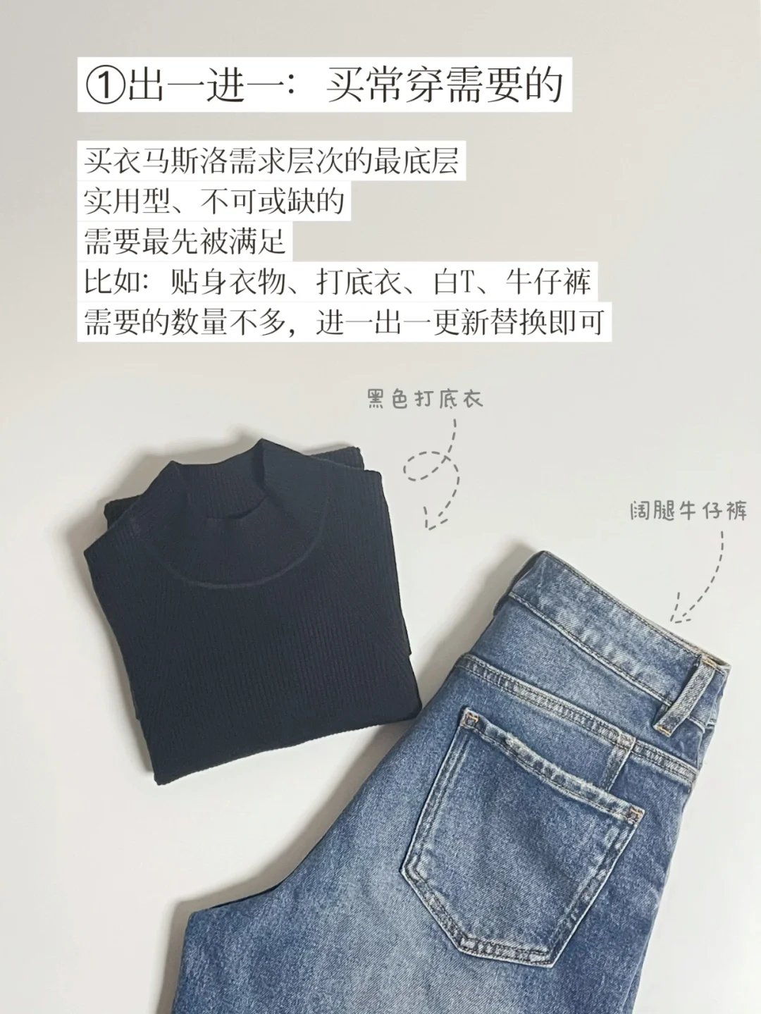 比如我秋冬先人的黑色打底衫、牛仔裤,一个是内搭经常叠穿,一个好搭随穿随走。旧衣已变形褪色,进一出一满足平时穿衣需要。