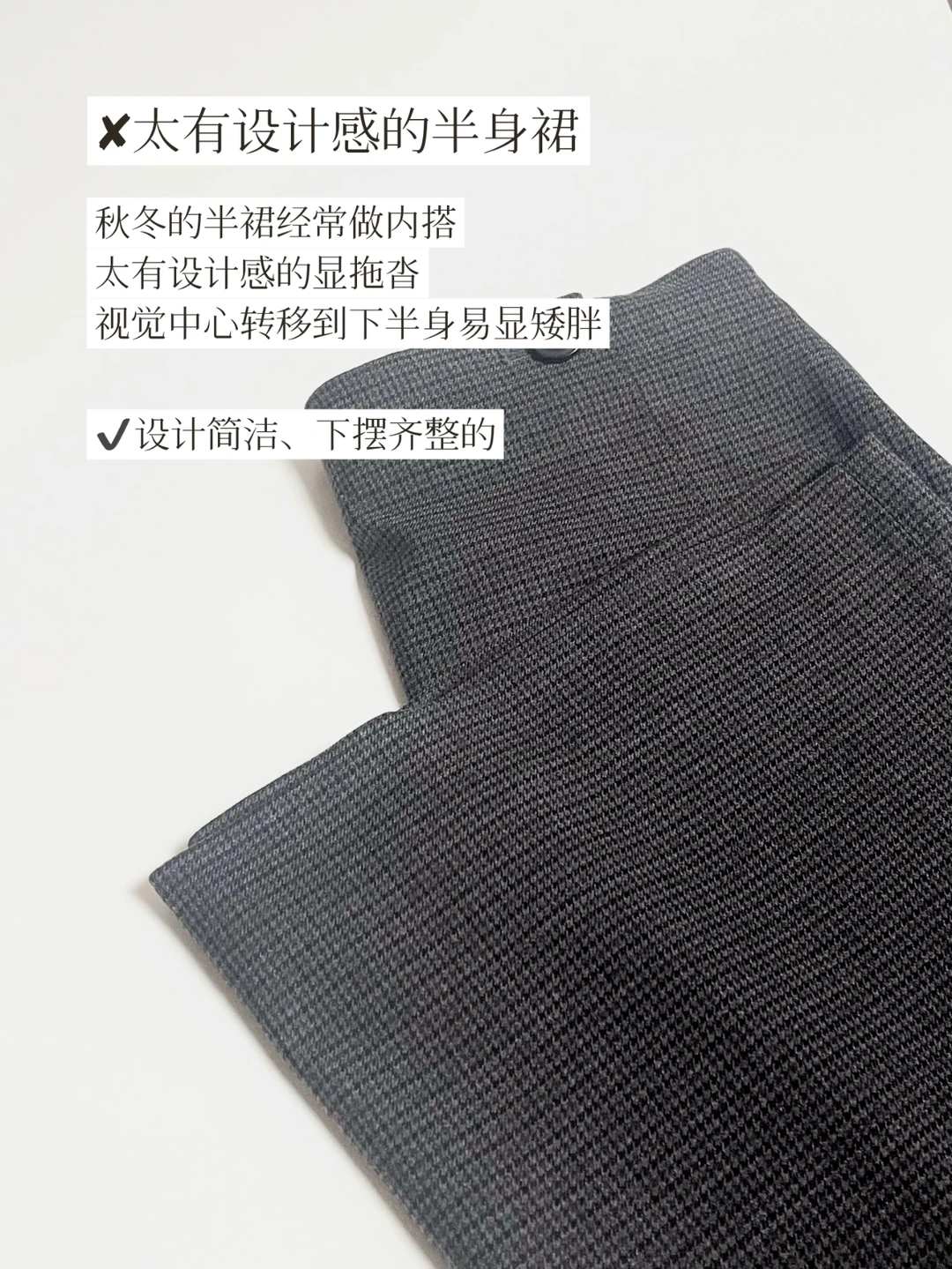 秋冬的半裙经常做内搭,太有设计感的显拖沓,视觉中心转移到下半身易显矮胖