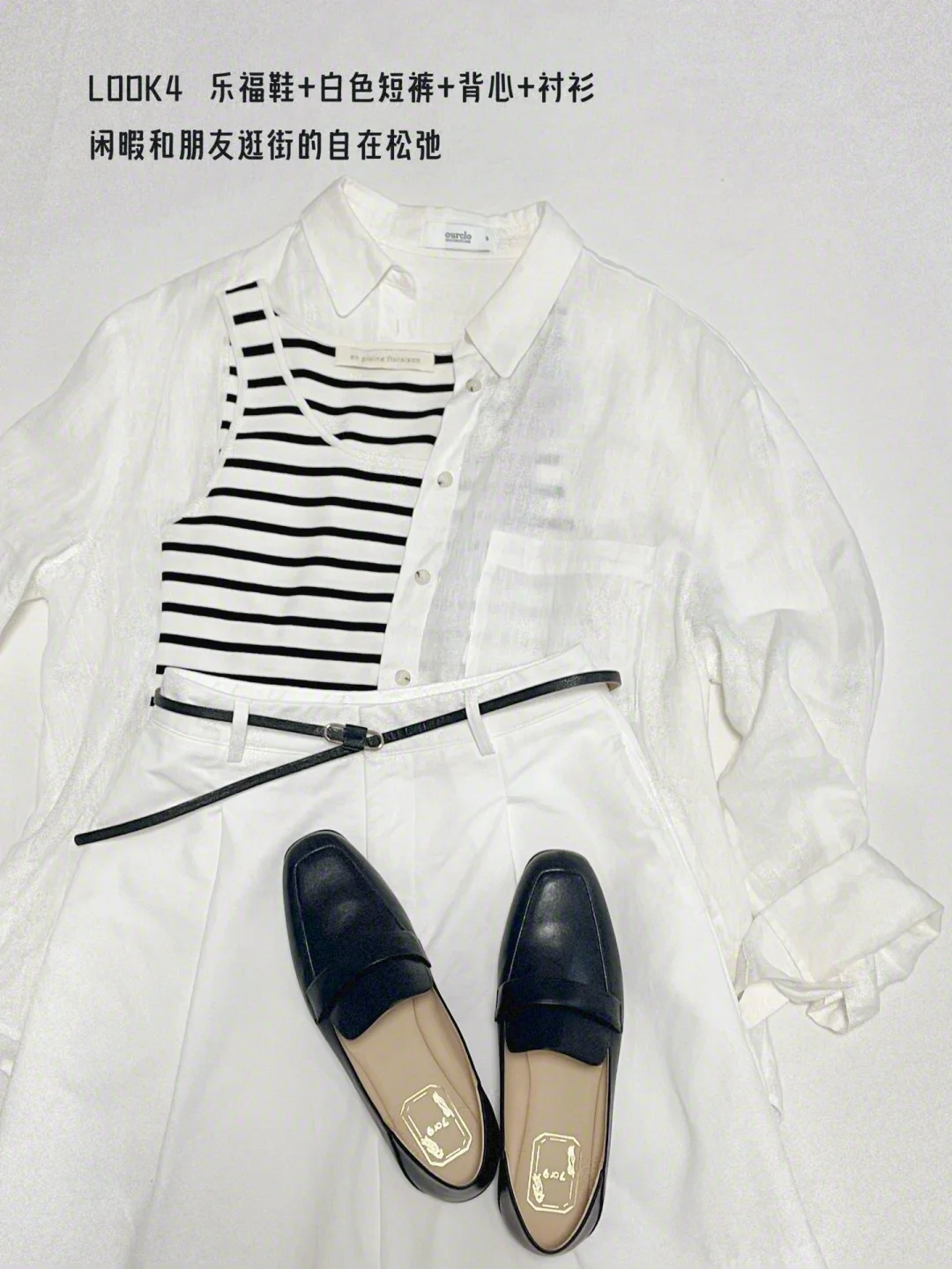 ▫️乐福鞋+短裤+背心+衬衫,自在松弛