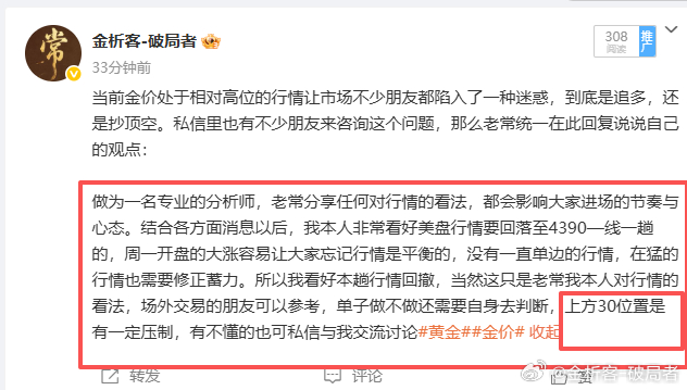 来自粉丝朋友的肯定,老常不想过多标榜自己的实力如何,如果你想了解一个老师的实力,最好的方式翻阅微博对照单子时间,以及他每天的思路,这样能让你感受到实力的存在。最近不少微博跟上的朋友多多少少也赚了一点,说实话还是高兴的!在这里还是提醒各位操作单时一定要注意自己仓位以及止损,老常公司事情比较多,如果没有及时给大家回复私信,还望大家能够理解,最后祝大家操作顺利,一帆风顺!黄金金价