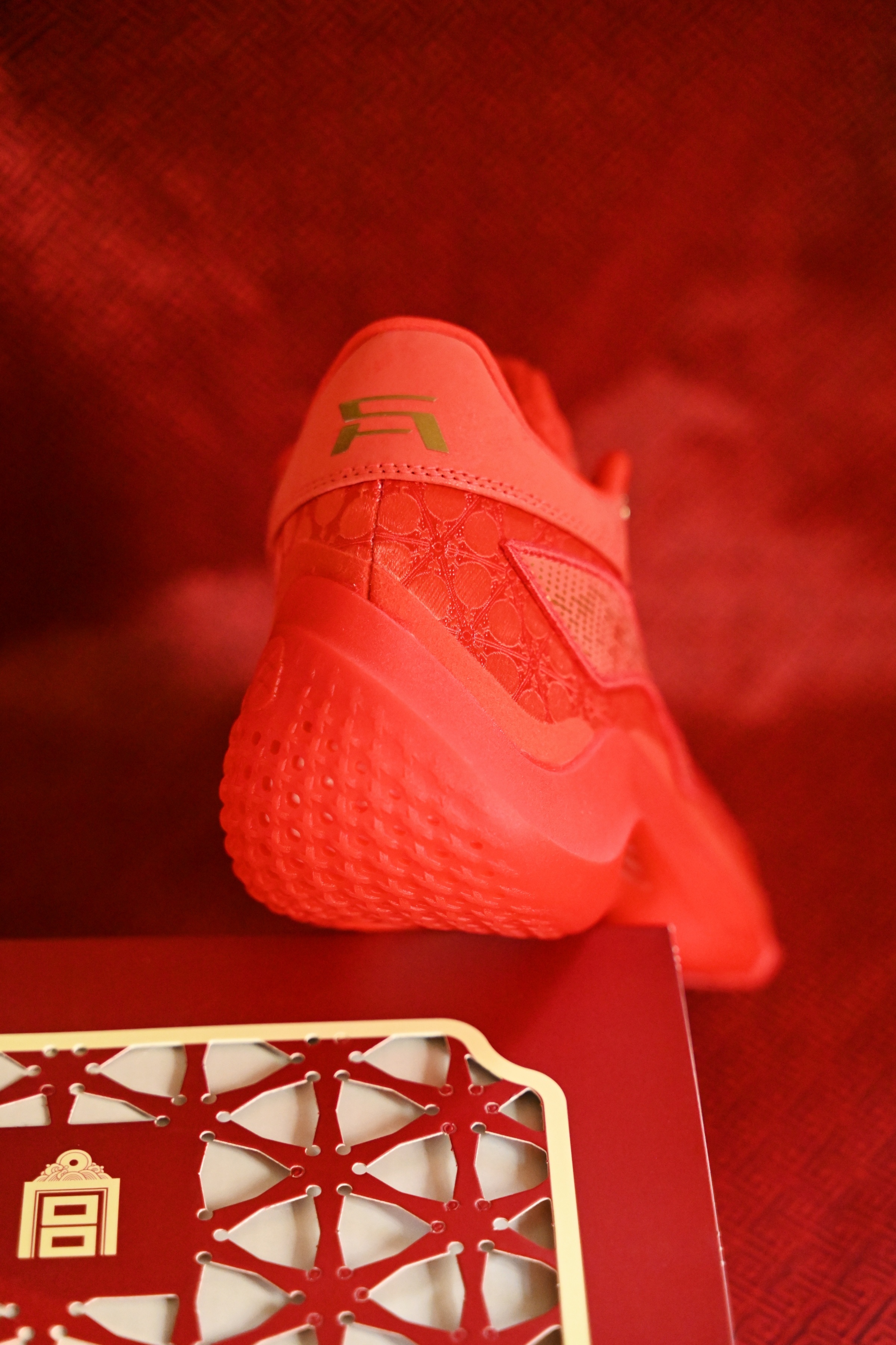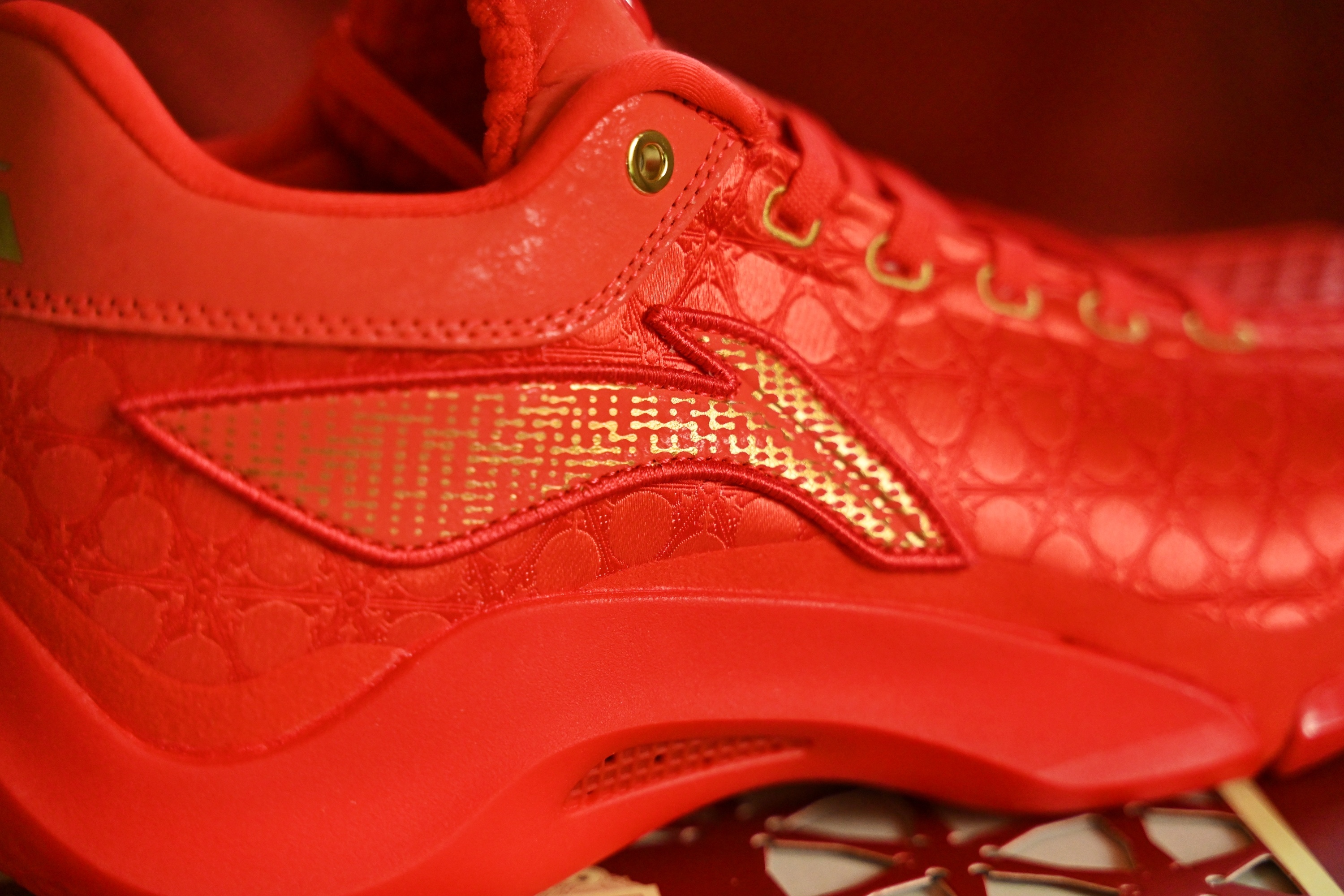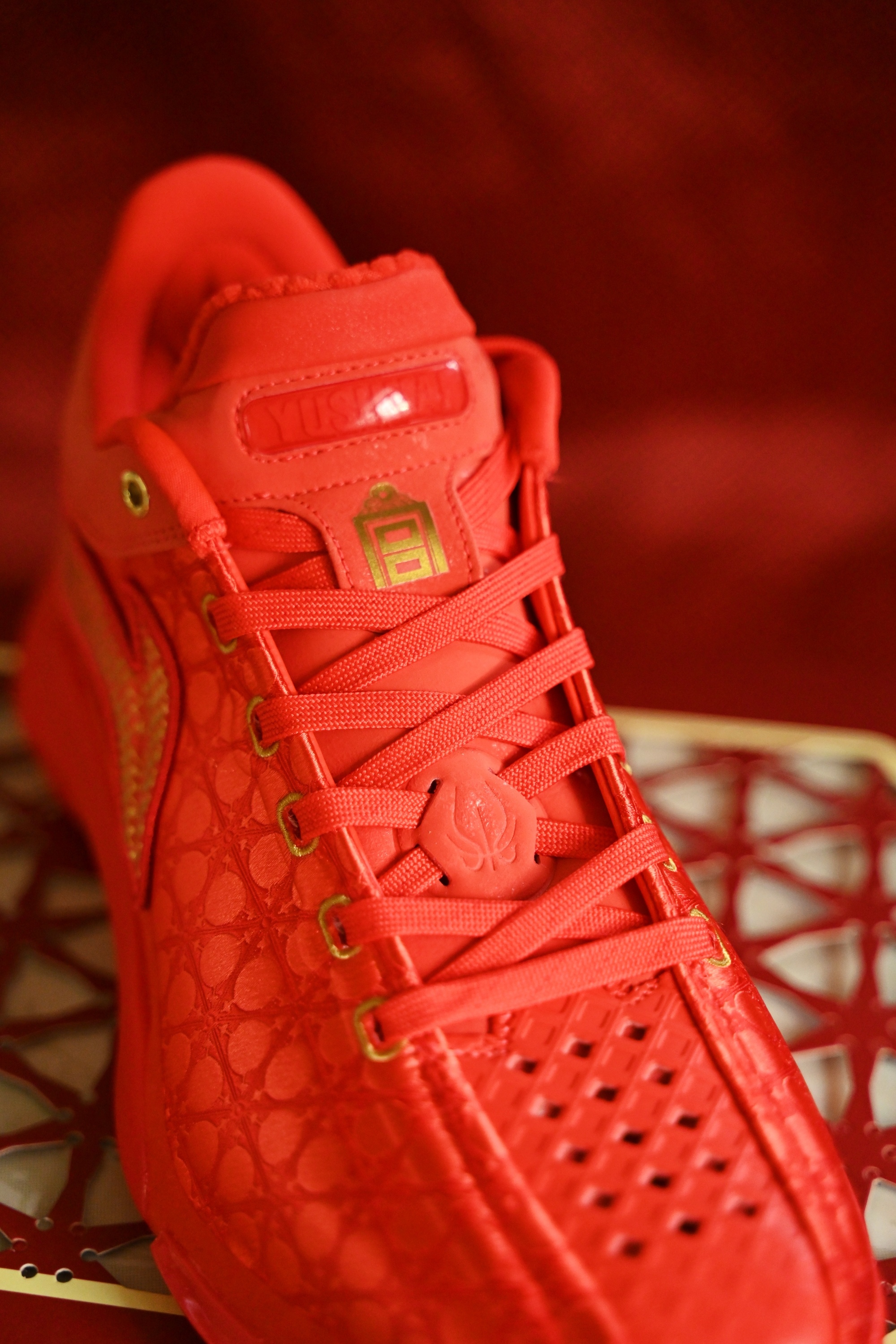 金红交织 历史沉淀 于诺大中取一隅 点染鞋上 疾疾如䨻 静可观 疾若风 凹凸秀