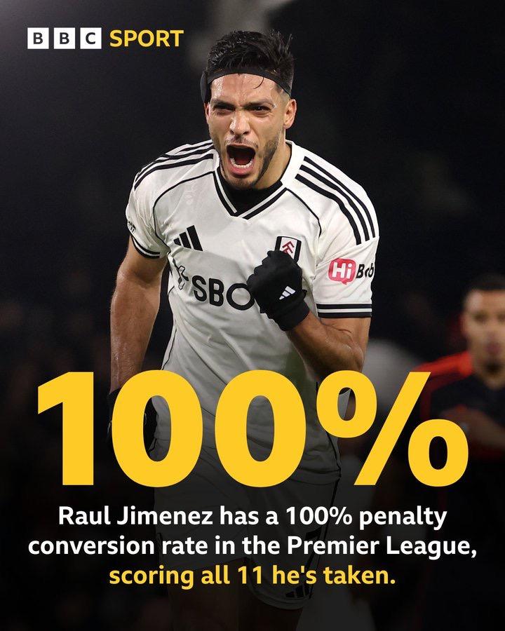 据统计,这是希门尼斯在英超打入的第11粒点球,并且点球命中率100%。