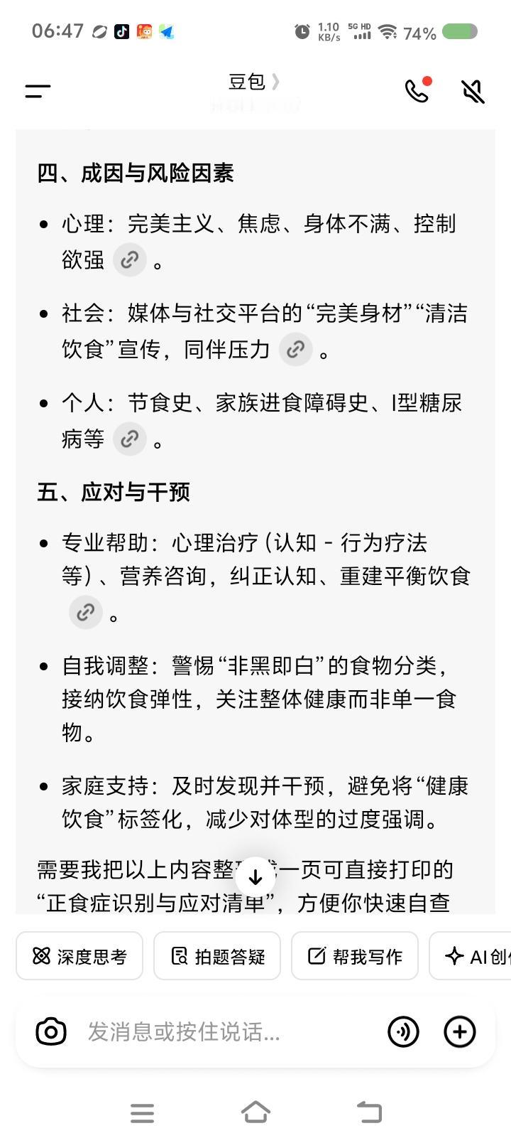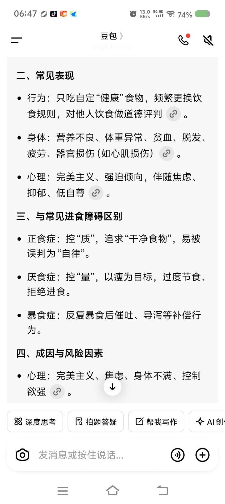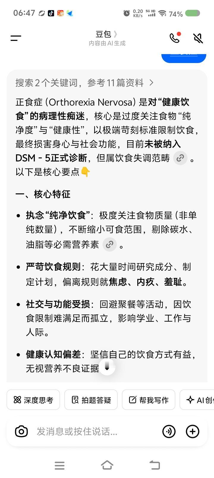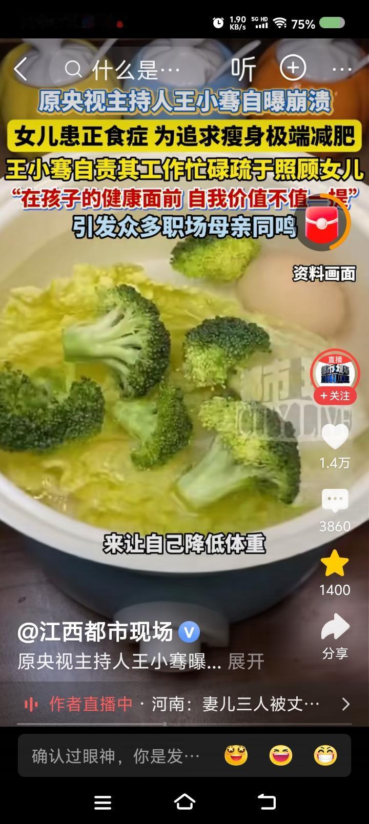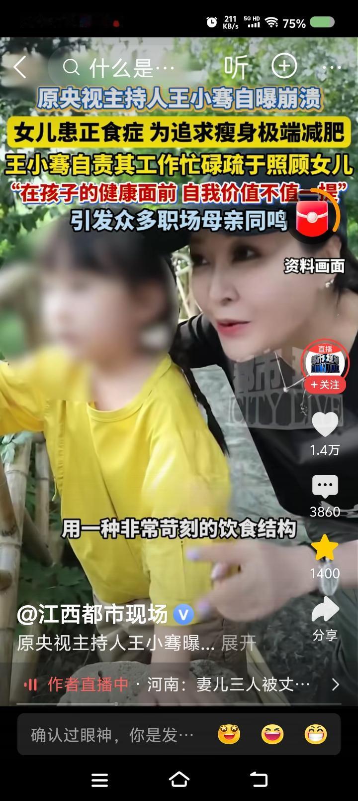 什么叫“正食症”?—— 据报道,某主持人说孩子得了“正食症”,用严苛的饮食结构降低体重,几乎不涉碳水。“我感觉快崩溃了,在孩子的健康面前,我那点自我价值不值一提。”她自责忙于工作,疏于照顾孩子。 点评: 一、第一次听说这个名词。资料显示,它是饮食失调,过度追求食物“健康度”、“纯净度。严重的话,会导致健康、社交等方面出现问题。 二、健康第一,首先是正确认识什么是“健康”。