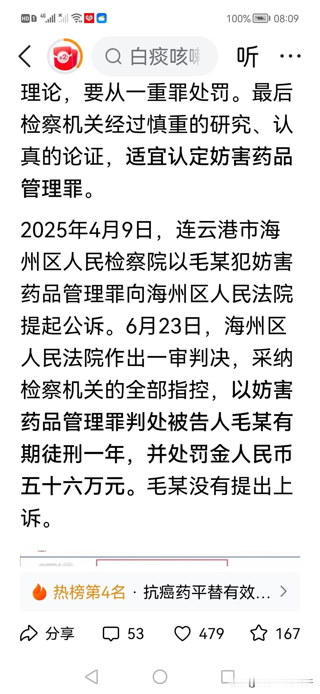 我不是药神和我是药神的区别 电影《我不是药神》那些病人和家属可怜巴巴到处找救命药,处处上当受骗的情节就在我身上栩栩如真实生活的经历过。 为了我姐我也是天南海北的找,和医院后面黑暗的小平房里偷偷来医院宣传的老头老太太也交涉过,上过最大媒体视,一个台作广告,另外一个台揭露假药的药也买过,为了让亲人多活几天,咬着牙把血汗钱往出拿!没办法,你的亲人眼巴巴的求生,谁能忍心说no? 这中间有病人和家属有病乱投医才给骗子留下让他们肆无忌惮的缝隙,也有监管不到位,法律不健全的因素。 无论如何敢自己倒腾药,自己找渠道生产防治药胆子不可谓不大,是真的大! 那是多少患者的命啊!那是多少晚期患者的不可多得的时间和机会!也是他们赖以寻找希望,向死之前能少受点罪的最后的依靠。 这个人自己联系国外仿制药,然后一点有效成分都没有,最后他说不知道这是假药。 最后以危害药品安全管理罪判刑了一年有期徒刑,罚了五十六万。 我想知道他获利多少?危害药品安全管理罪这么轻吗? 这种刑法能有效杜绝假药吗?今后会不会有人争相效仿? 病人的安全靠什么保证?