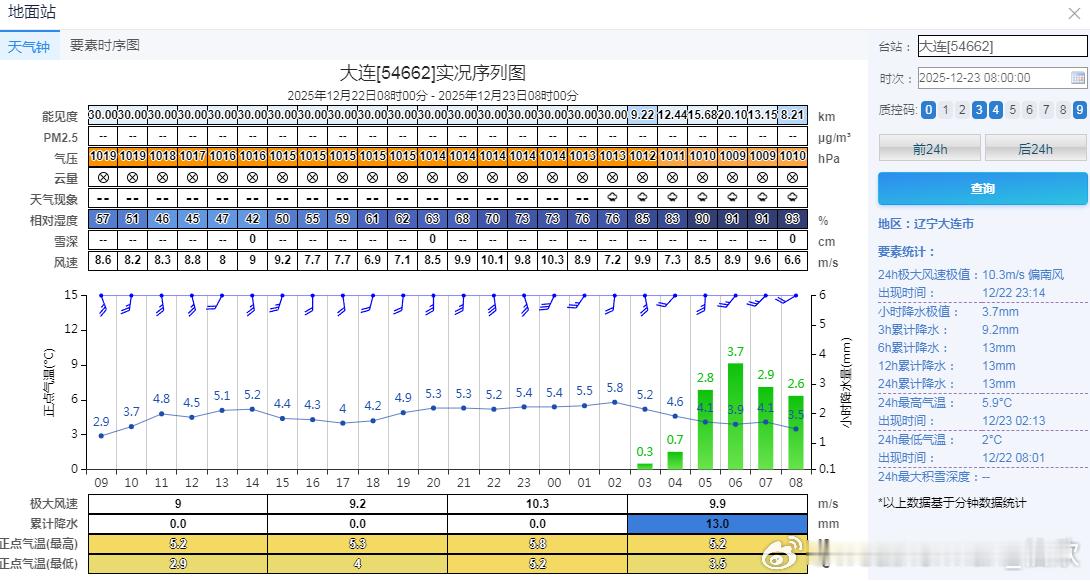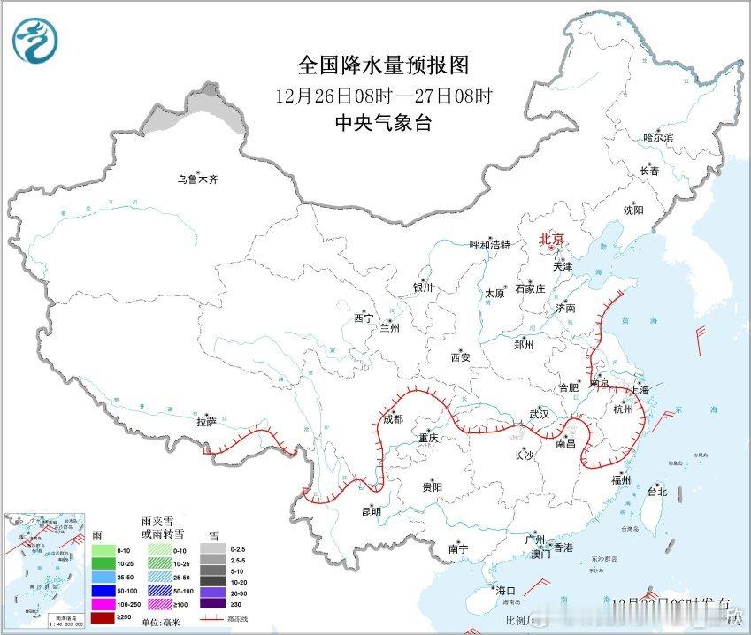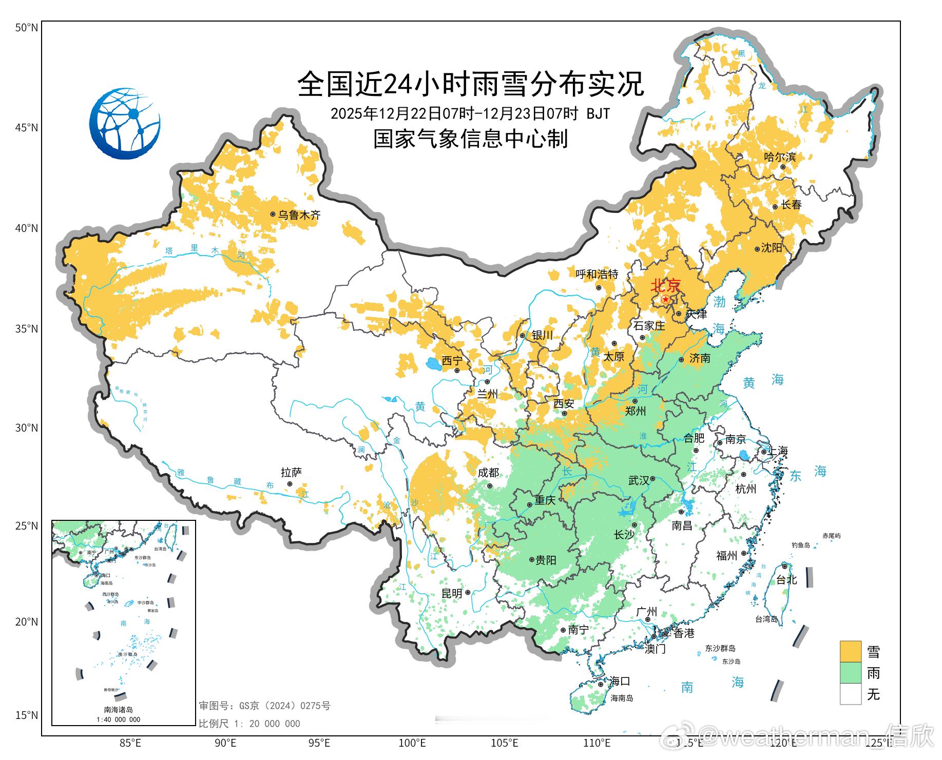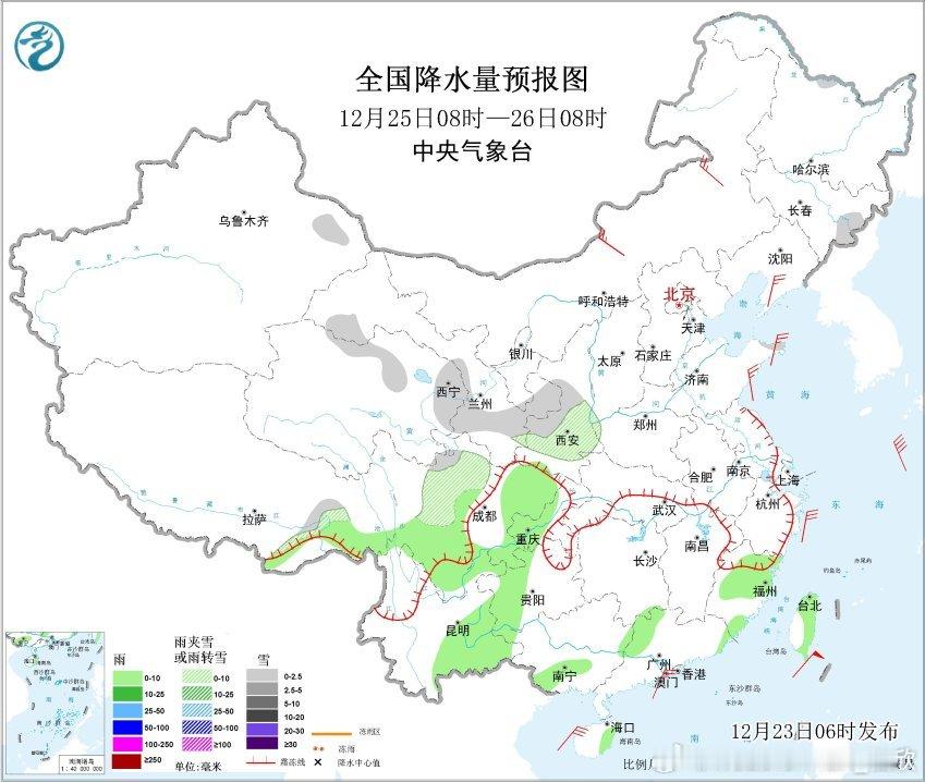 【雨雪】昨天到今晨,中东部出现大范围降水,因为基础气温高,辽宁南部的大连也出现的是降雨,辽宁南部、山东南部、江苏北部、安徽北部、湖北西部一些站点出现了中雨。西北、华北和东北部分地区出现降雪。今天白天降雪重点就是在东北。黑龙江东北部及南部、吉林中东部、辽宁中北部等地部分地区有大雪,局地暴雪(10~12毫米)。此外黄淮东部、江淮、江汉东部、江南大部、西南地区东部、华南北部和西部等地部分地区有小到中雨。明天北方降水基本结束,南方还有较大范围降雨。25日白天,南方降雨收敛,但云量较多。26日以后,南方也会逐渐放晴,12月26日-12月31日,2025年的最后几天,我国大部地区雨雪稀少、晴朗干燥。