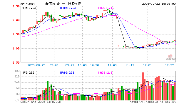 12月22日,通信设备ETF(159583)涨3.89%,成交额3.06亿元。当日份额减少3800.00万份,最新份额为10.95亿份,近20个交易日份额增加6400.00万份。最新资产净值计算值为14.02亿元。