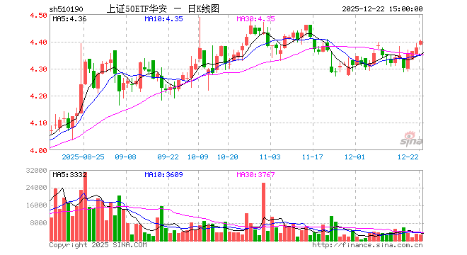 12月22日,上证50指数ETF(510190)涨0.55%,成交额127.21万元。当日份额减少50.00万份,最新份额为3665.08万份,近20个交易日份额减少50.00万份。最新资产净值计算值为1.61亿元。