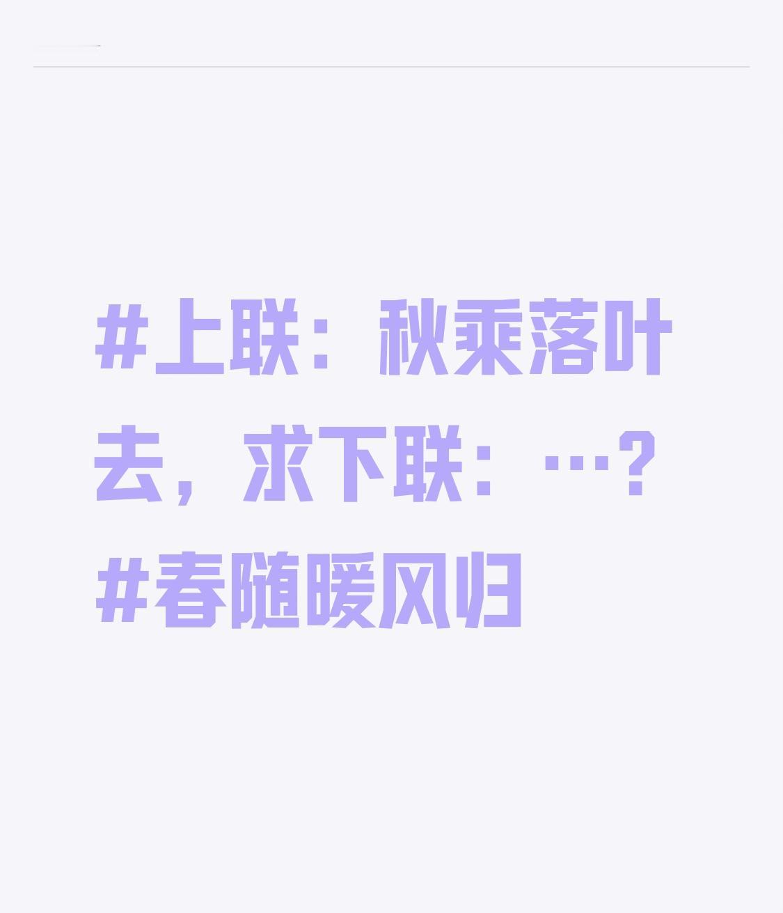 上联:秋乘落叶去,求下联:…?春随暖风归