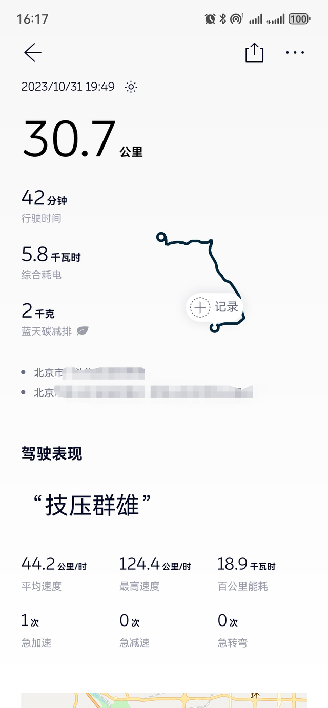蔚来ES6能耗如何 温度适宜,是对电动汽车最友好的季节。大家的蔚来ES6能耗都是怎么样的呢? 我来分享一下最近几天的用车能耗: 2023年11月2日:8次急加速,总行程23.5公里,最高车速113.9公里每小时,平均车速23.5公里每小时,主要在城市道路,红绿灯起步保证第一个窜出去,绝对不让后车着急的开车方式,百公里能耗17.9kW。 2023年11月1日:3次急加速,总行程30.7公里最高车速122.7公里每小时,平均车速63.3公里每小时,主要在高速上,高速比较顺畅开得比较快,百公里能耗19.9kW。 2023年10月31日:1次急加速,总行程30.7公里,最高车速124.4公里每小时,平均车速44.2公里每小时,主要在高速行驶,百公里能耗18.9kW。 对于一个2.3吨重的中型SUV来说,这个能耗大家觉得怎么样?是不是对于大多数蔚来车主来说,反正换电池免费,能耗多少无所谓呢。 通过用车两年左右的使用总结,我的ES6一块100度的电池在春天和秋天这种温度适宜,不需要大量开空调的时节大约能跑480公里,这个续航成绩几乎跟燃油车加满一箱油的中型SUV差不太多,是不是还不错?