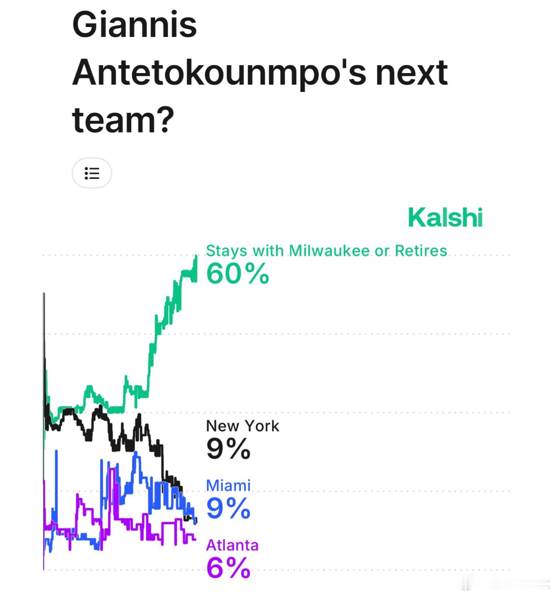 字母哥概率越来越小了,留雄鹿或退役60%,热火、尼克斯9%,老鹰6%新赛季篮不住2026nba全明星投票