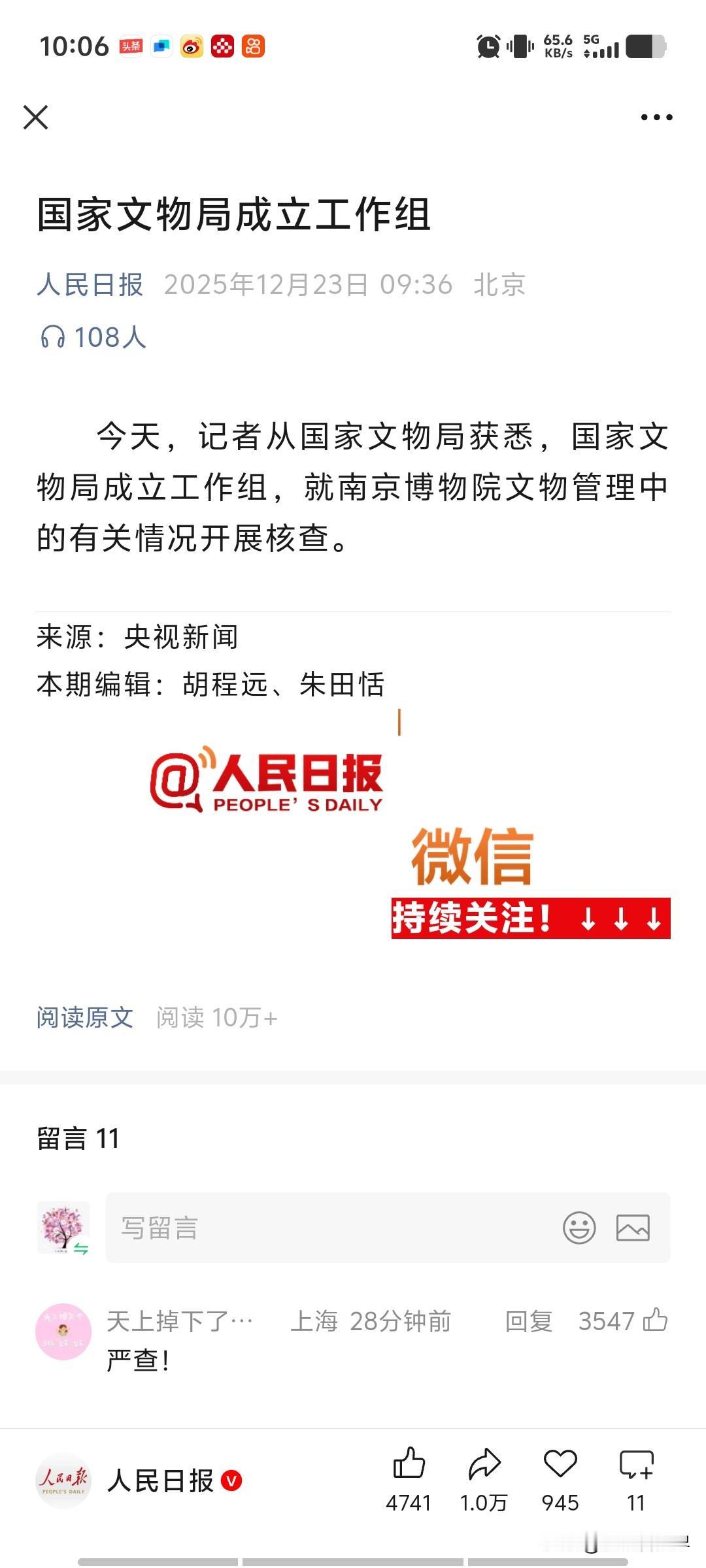 国家周文物局出手,蛀虫无处遁形! 近日,南京博物馆事件引发舆论哗然,国家文物局今日宣布介入调查,释放出明确信号:谁敢拿祖宗的文化遗产做交易,谁就要付出惨痛代价! 文物是国家记忆的载体,民族精神的根脉。然而少数“内鬼”却将博物馆当成自家金库,把千年珍宝视为个人提款机。 那些隐藏在阴影里的交易者、那些利用职权中饱私囊的驻虫该清醒了——当国家重拳落下时,没有任何保护伞能遮住你们的罪行。南京国家文物 南京博物馆拍卖 国家文物保护法 国家文物尊重 南京博物馆