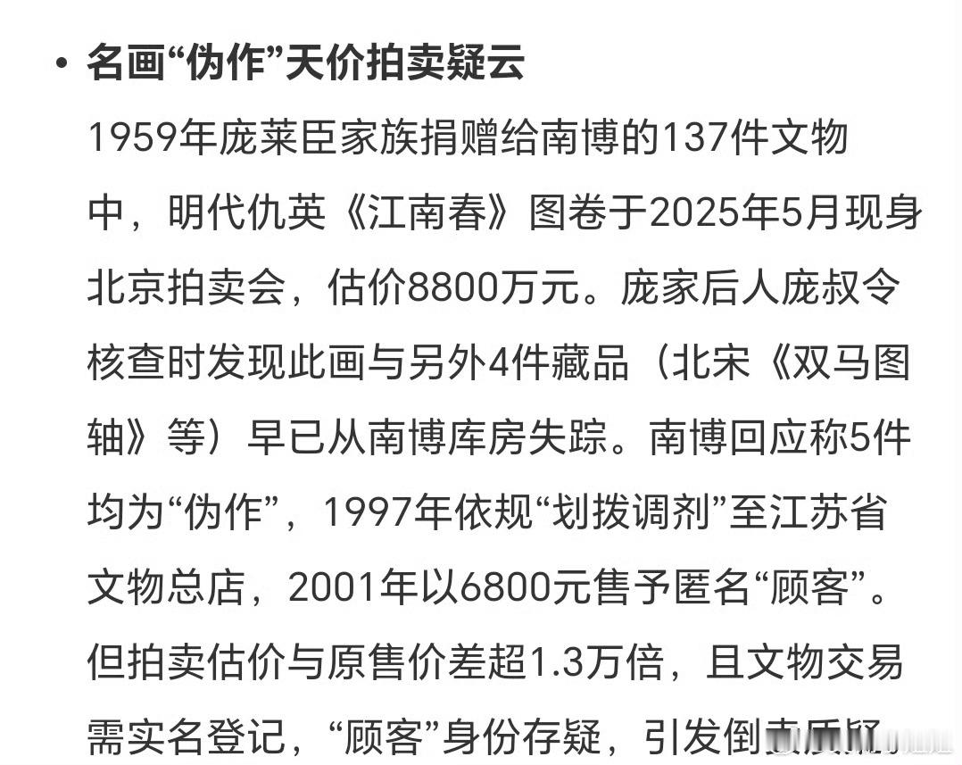 官方通报南京博物院事件本来文物放在博物馆内,我们就算可以参观没办法验证真伪,更别提一个有效的监督渠道,之前看到退休老员工实名举报时都觉得半信半疑,希望调查不要敷衍了事