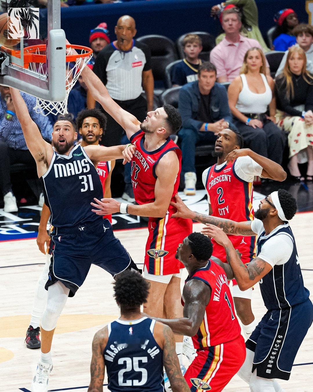 这对组合上半场表现堪称全明星级别!AD和克莱上半场合砍42分。这是二人在本赛季上半场得分最高的一次🔥独行侠vs鹈鹕