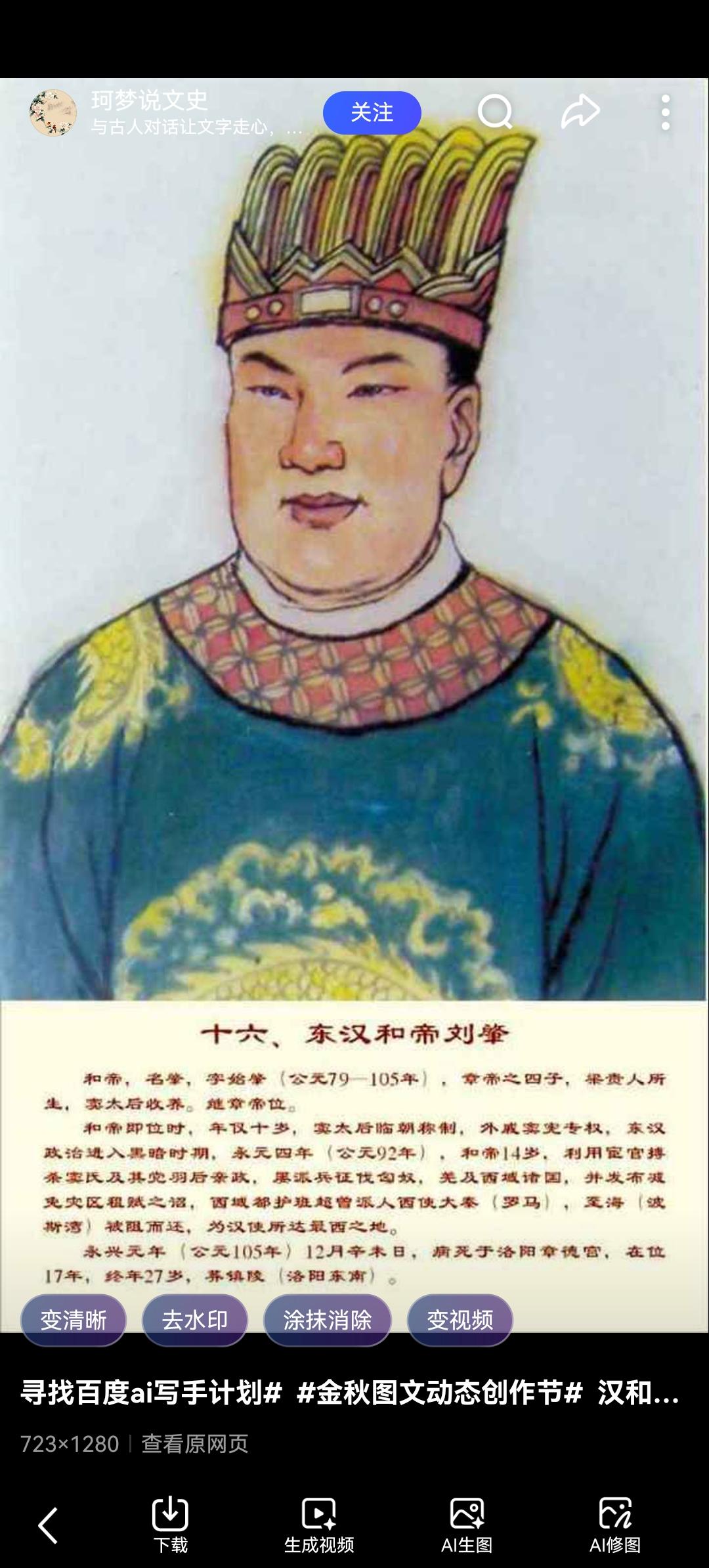 汉朝“仁政之光”——刘肇:短暂却耀眼的中兴君主 当你想到伟大的帝王,总会想到雄才大略、战功赫赫的领袖,比如汉武帝的雄心壮志,或者汉景帝的稳重睿智。然而,在那漫长的汉朝历史长河中,有一位皇帝,他用宽厚仁慈的政绩和稳健的治理,为汉朝的中兴之路点亮了一束不同寻常的光芒。他,就是汉和帝刘肇——一个用仁政书写历史的明君。 他的一生虽然短暂,但他的作为,却深深影响了后世。今天,让我们穿越时空,走近这位“仁政之君”,感受他用实际行动诠释的“以德治国”的智慧。 一、少年登基,面对巨大挑战的抉择 公元105年,年仅16岁的刘肇继承皇位,年号永光。年幼的他,面对的是一个由盛转衰、内忧外患的国家。汉明帝刘庄去世后,汉朝虽然还算安定,但隐隐约约的危机已开始浮现。此时的他,既要稳固皇权,又要振兴国家,压力巨大。 刘肇出身名门,父亲是汉章帝刘炟,母亲出身名门望族。年轻的他,聪明善学,深知治国之道在于“仁政”。他明白,只有赢得百姓的心,国家才能长治久安。于是,他在即位之初,就立志走一条不同凡响的道路。 二、仁政理念:以德治国,宽厚待民 刘肇的治国思想核心,是“仁政”。他强调“以德治国”,反对苛政猛征,主张减轻百姓负担,改善民生。面对民间疾苦,他采取宽政措施,减免赋税,放宽徭役,让百姓得以喘息。 他还着手整顿吏治,惩治贪官污吏,提拔清正廉洁之士,确保政令畅通。为了培养一代有德有才的官员,他设立太学,提倡儒学思想,使得国家的文化氛围日益浓厚。 他深知,良好的民心基础,是国家长远稳定的关键。正因为如此,他的政策多以“宽”和“德”为核心,赢得了百姓的爱戴,也为汉朝的中兴奠定了坚实的基础。 三、稳健的政治措施:强化中央,防范割据 在政治方面,刘肇采取稳中求进的策略。他整顿朝政,提拔贤能之士,避免权臣专权带来的弊端。为了巩固皇权,他加强对地方的控制,防止割据势力的崛起。 同时,他还开始尝试科举制度的萌芽,选拔德才兼备的官员。这一系列措施,为汉朝的政治稳定提供了保障,也为后续的中兴之路铺平了道路。 四、经济振兴:农业、手工业、商业齐头并进 经济方面,刘肇着眼于民生福祉,采取多项措施振兴农业。他推动水利工程建设,改善灌溉系统,确保粮食丰收。与此同时,他鼓励手工业和商业发展,推动经济多元化。 在他的努力下,市场逐渐繁荣,百姓生活逐步改善。国家财富逐年增加,为国家的长远发展提供了坚实的物质基础。 五、文化繁荣:推崇儒学,塑造和谐社会 文化方面,刘肇大力推崇儒学,设立太学,鼓励学术研究。他强调“以德治国”,提倡仁义礼智信的价值观,使社会风气趋于和谐。 他重视人才培养,任用贤能之士,形成了良好的政治生态。这一文化氛围,不仅提升了国家的软实力,也为社会的稳定与繁荣提供了坚实的思想基础。 六、对外政策:边疆稳定,和平共处 在对外关系方面,刘肇采取宽和的外交策略。他减少对外战争,巩固边疆防线。通过派遣使者与少数民族和邻国保持友好关系,促进边境地区的稳定。 他的这些措施,为汉朝赢得了宝贵的和平时期,也为国内经济文化的繁荣提供了良好的外部环境。 七、短暂的在位,长远的影响 刘肇在位仅一年多(公元105年至106年),但他所推行的仁政理念,却在历史上留下了深远的影响。他被后人誉为“仁政之君”,强调“以德治国”、宽厚待民的思想,为汉朝的中兴提供了宝贵的经验。 他去世后,谥号“孝宣皇帝”,庙号“孝宣”,彰显了他的孝顺与仁德。虽然在位时间不长,但他的政治遗产,成为汉朝由衰转盛的重要转折点。 八、总之:刘肇——仁政的典范,国家的希望 作为一位仁政的代表,刘肇用宽厚、稳健的治国理念,推动了汉朝的中兴。他的政治措施强调德治、民本,注重人才培养与社会和谐,为后世树立了宝贵的榜样。 他的故事告诉我们,领导者的仁德与智慧,能带来国家的长久繁荣。在今天这个追求公平与和谐的社会,刘肇的“仁政”思想依然具有现实指导意义。 最后:你的看法呢? 刘肇用短暂的时间,留下了深远的影响。你认为,在现代社会中,仁政的理念还能发挥怎样的作用?你是否也相信,一个善待民众、以德治国的领导,能带来更美好的未来?欢迎在评论区留言,分享你的观点!让我们一起传递正能量,探讨更好的治理之道!汉朝皇帝 汉朝名臣 西汉皇帝