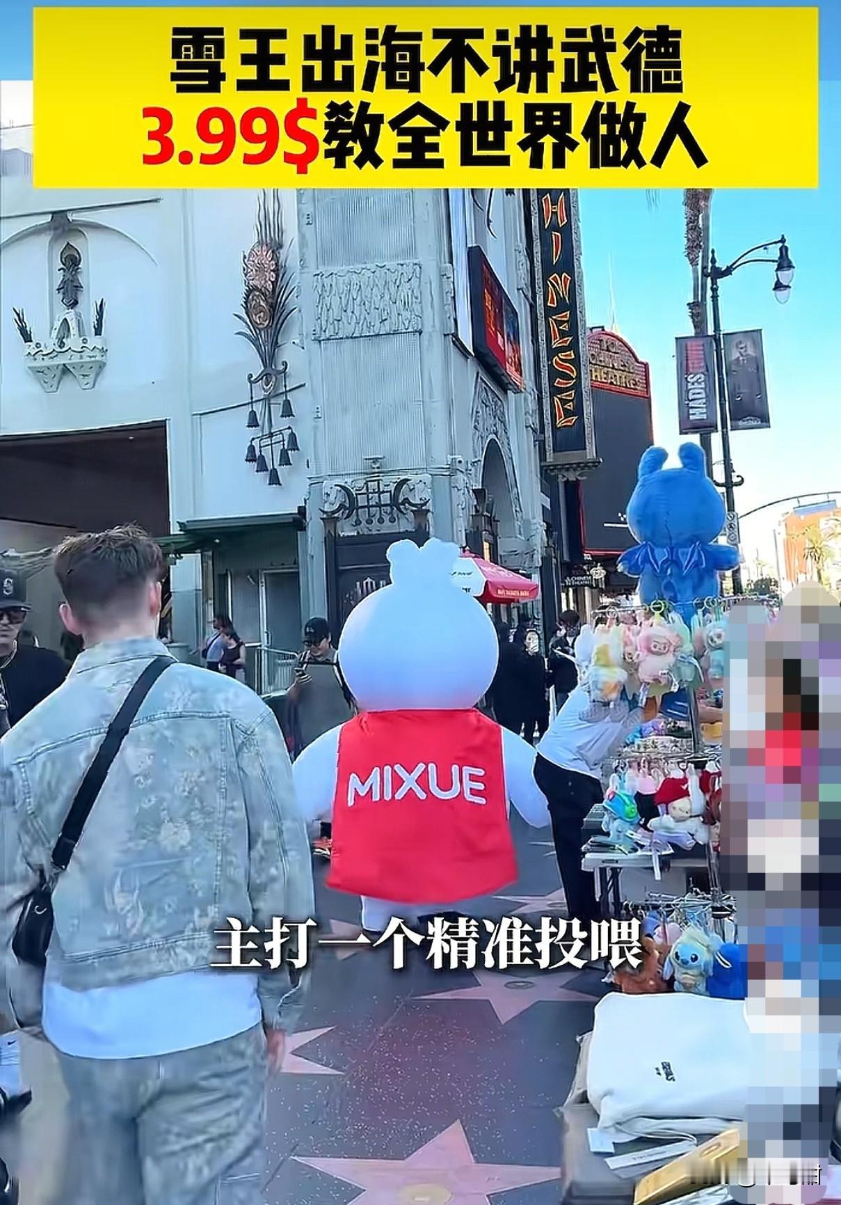 谁能想到,我们的雪王卷到美国了!蜜雪冰城1.19美元横扫外网,这是要从国内卷到欧洲的节奏,这价格谁敢比拼? 蜜雪前脚在国内把平价茶饮卷得没朋友,后脚就跑到海外搞事情,1.19美元就能买到饮料或者冰淇淋,这价格在美国简直就是地板价,要知道在美国随便一杯奶茶都要五六美元起步,这让外国友人还是去打卡的华人留学生,都忍不住冲一波。 12月20日,蜜雪冰城洛杉矶好莱坞店正式开业,选址就在TCL中国剧院正对面的黄金地段,开业那天门店直接排起长队,而且雪王还挺会入乡随俗,特意搞了超高甜档位,精准拿捏美国人的口味,最高可达加糖200%。 要知道海外开店成本可不低,美国的店租和人工贵得离谱,欧洲还有各种政策限制,但蜜雪偏偏就敢在黄金地段卖低价,这波操作,怎是一个“卷”字了得,大家觉得雪王到底会不会亏啊? 有网友说,雪王啊,咱挣不到钱就加价,吸管和饮料该分开收费就分开收费,谁让他们的苹果手机和数据都分开卖呢? (图片来自网络视频)