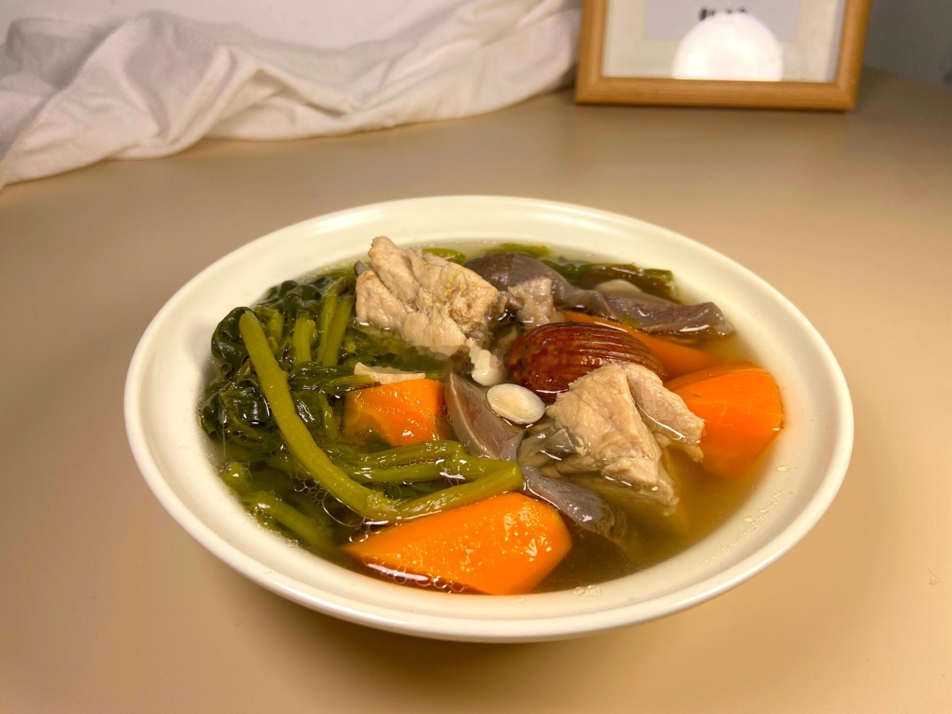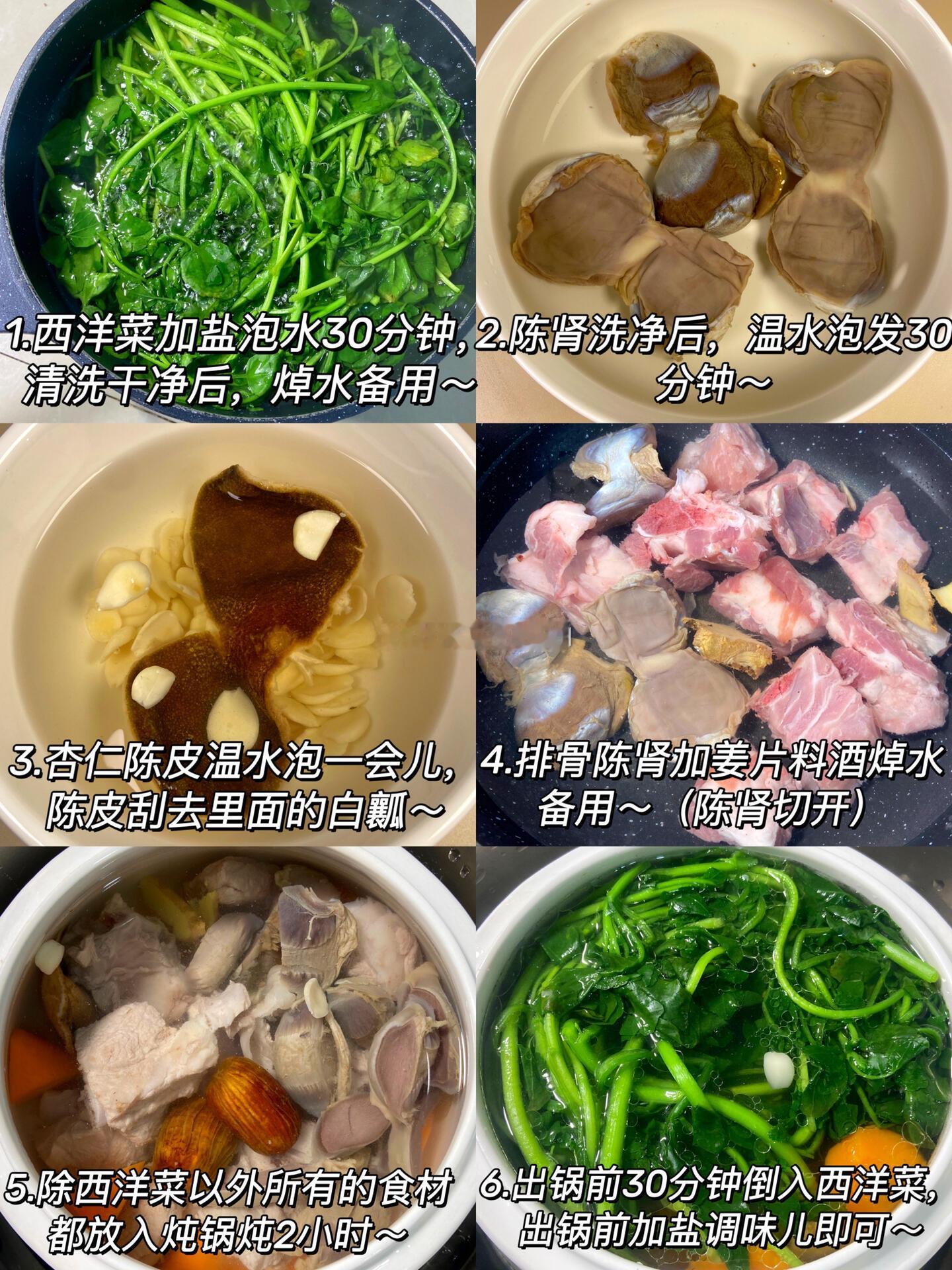 ㊙️西洋菜陈肾汤|清肺润嗓 下火气🔥甘润好喝秋冬季节干燥最近多吃一点儿辣的🌶️鼻子直冒火🔥早上起床经常会感到口燥咽干秋冬季清润养生试试这个西洋菜陈肾汤清肺润燥,健脾消滞真的太香了!!!🔅西洋菜性寒,具清燥润肺、清热止咳、化痰利水的作用。此汤味道甘香、清甜下火,具有清热润肺、通利肠胃的功效!🔅陈肾是广东特有的食材,即腊鸭肾,性温味甘,有清热润肺,健脾养胃的作用!✅食材:-西洋菜:300克-排骨:300克-陈肾:2 3个-胡萝卜:1个(小)-南北杏:20克-陈皮:1小瓣儿-蜜枣:2个-姜片:几片✅做法:1⃣️西洋菜买回来简单清洗一下,水里放盐泡30分钟,洗净后焯水备用~2⃣️陈肾清洗干净放温水泡30分钟,陈皮南北杏儿也泡一下,陈皮记得刮去里面的白瓤~3⃣️排骨 陈肾加生姜料酒焯水后备用,陈肾切开更好入味儿~4⃣️除西洋菜所有的食材一起放入炖锅,隔水炖2个小时,出锅前30分钟放入焯好水的西洋菜~5⃣️出锅前加适量盐调味儿,陈肾有咸味儿也可以不放~⚠️小tips:1.西洋菜可以不用焯水,放的时候水要翻滚,这样不会有苦味儿~2.陈肾要洗干净,以防有沙~3.用砂锅煲,大概1.5个小时就可~🔔Ps:不适宜人群:1.孕妇2.脾胃虚寒,大便稀淌的人🔶总结:这个汤口感咸香清润,甘甜好喝,非常的滋润,还下火气!感觉身体燥的快试一试吧✌️好好吃饭的一年晒出我的年度兴趣广东人的西洋菜陈肾猪骨汤有多绝广东人的西洋菜陈肾猪骨汤有多绝