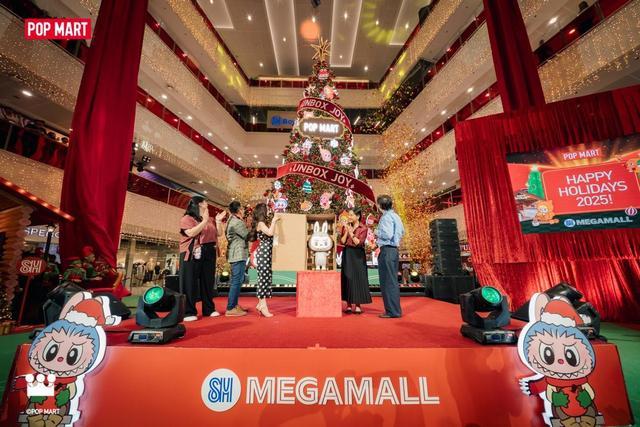 此次开业正值菲律宾圣诞消费季高峰,泡泡玛特深度融合本地节日文化,在商场一楼中庭打造了一棵高达12米的巨型主题圣诞树。树身装饰以品牌标志性IP形象,融合绚烂灯光与节日元素,迅速成为马尼拉热门的城市打卡地,吸引大量消费者驻足拍照并自发在社交平台传播,有效提升了品牌在当地市场的认知度与好感度。