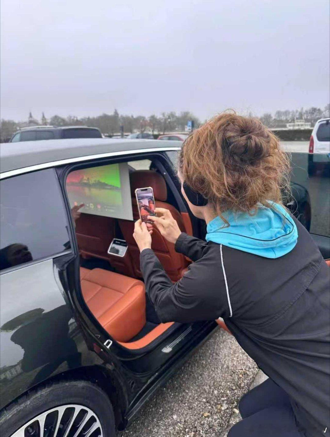 中国旅行车在慕尼黑街头引围观原来中国豪车在国外这么受欢迎 欧洲游偶遇享界S9T,车子被老外围住,他们轮流体验座舱,还和工作人员交流用车心得