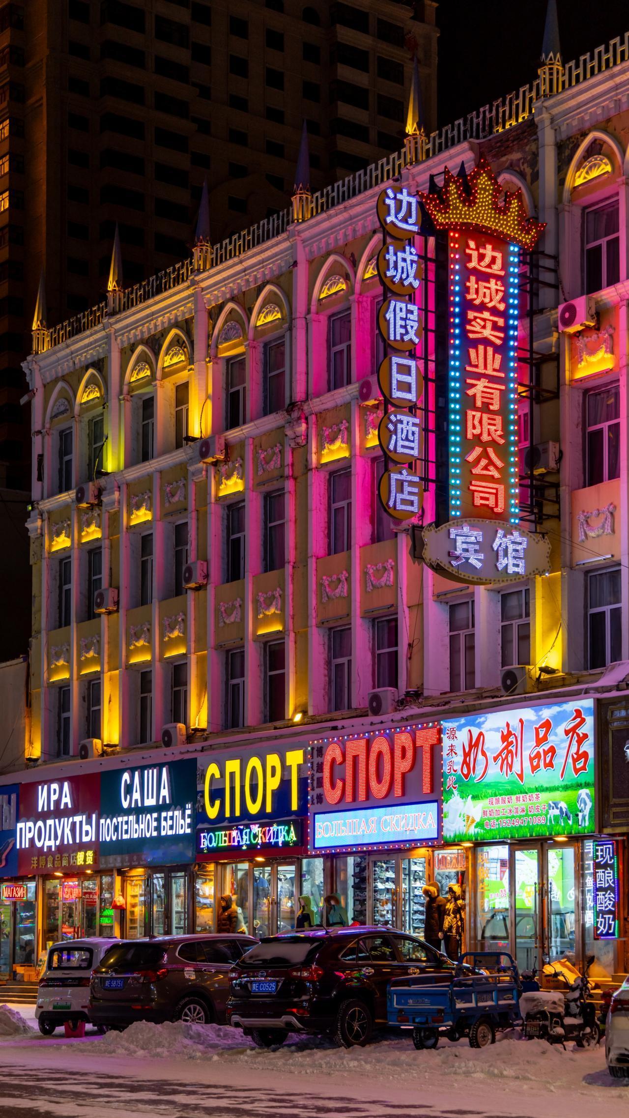 想象一个边境的寒冷小城,入夜后会是什么样子,我们从国门到金街,从蓝调的套娃广场到街角的奶茶店,脑海中原本以为的萧索被眼前的璀璨灯火驱散。在室内室外冷与暖近40度的温差中跳来跳去,逛街买御寒的手套帽子,买俄罗斯特产,吃内蒙美食,这里物美价廉,人民热情,三国语言的广告牌绚丽多彩。不禁感慨:祖国真的很强大,感恩每一天的幸福生活。 👉🏻分享满洲里必打卡的三个地方 ✅满洲里国门景区 是为国家4A级景区,矗立于中俄蒙三国交界,是北疆门户的象征。可以参观第四代国门、41号界碑、北疆明珠观光塔,体验“一眼望三国,鸡鸣闻三疆”的奇观。景区内还有六大纪念馆,红色展厅追溯革命历史,令人心生敬畏。 ✅蓝调时刻套娃广场 当蓝调时刻正巧遇上套娃广场亮灯,洋葱头城堡宛如童话场景,穹顶的暖黄灯光与蓝紫天幕交织,将俄式建筑勾勒成流动的水彩画,寒夜的凛冽与温柔奇妙共生。 ✅️中苏金街逛街买伴手礼 天黑了来金街逛街。这条街曾是1901年“博士大街”,百年商埠的沧桑与三国通商的繁华在此交融,街口憨态可掬的熊猫与北极熊雕塑,是中俄友谊的象征。从刺骨寒风踏入暖烘烘的店铺,体验超大的温差暴击,还可以买到各种特产商品,逛了山姆大叔超市价格良心。 踏冰逐雪原歌游内蒙古 满洲里旅行 内蒙美好推荐官