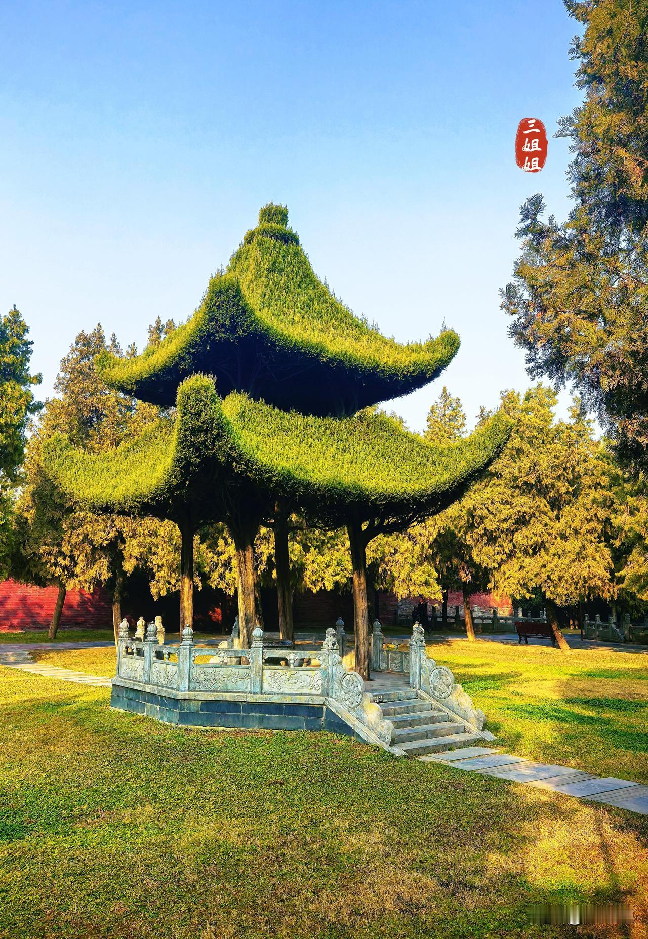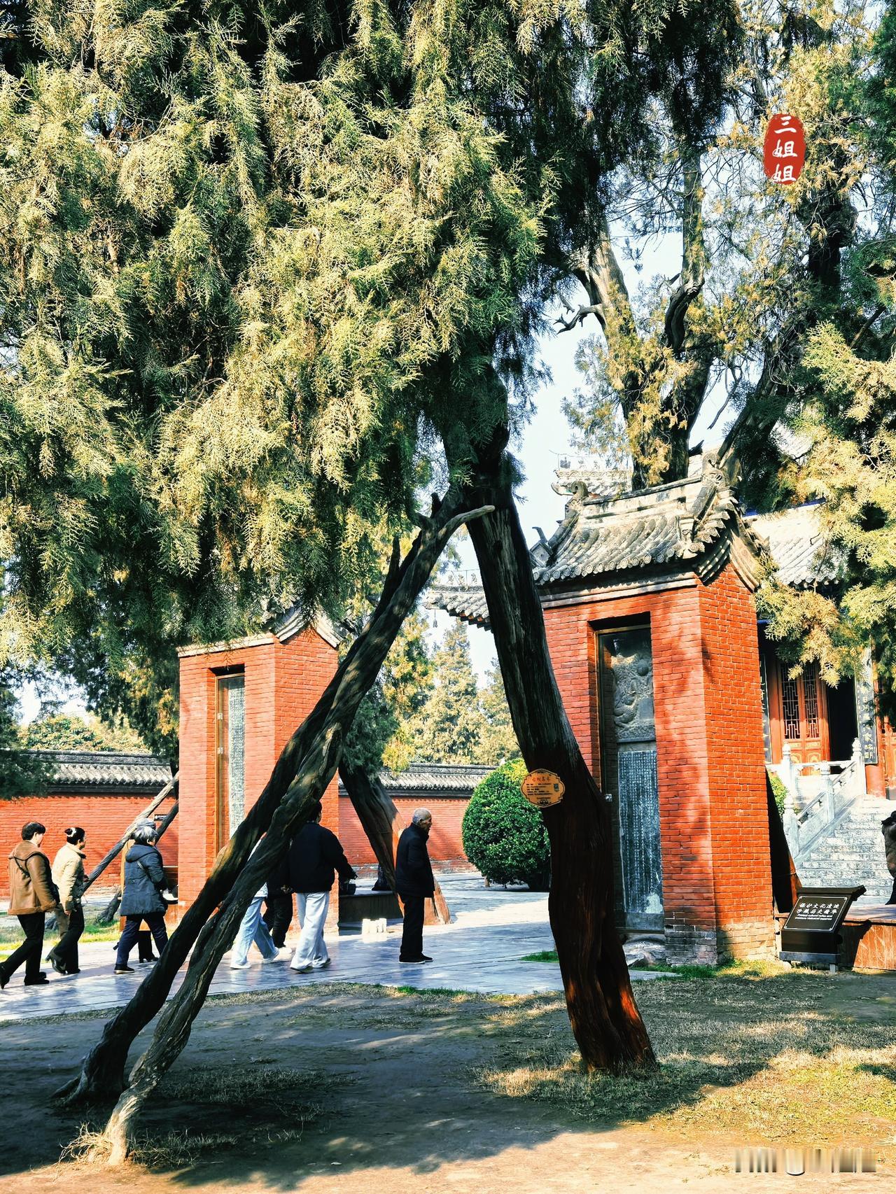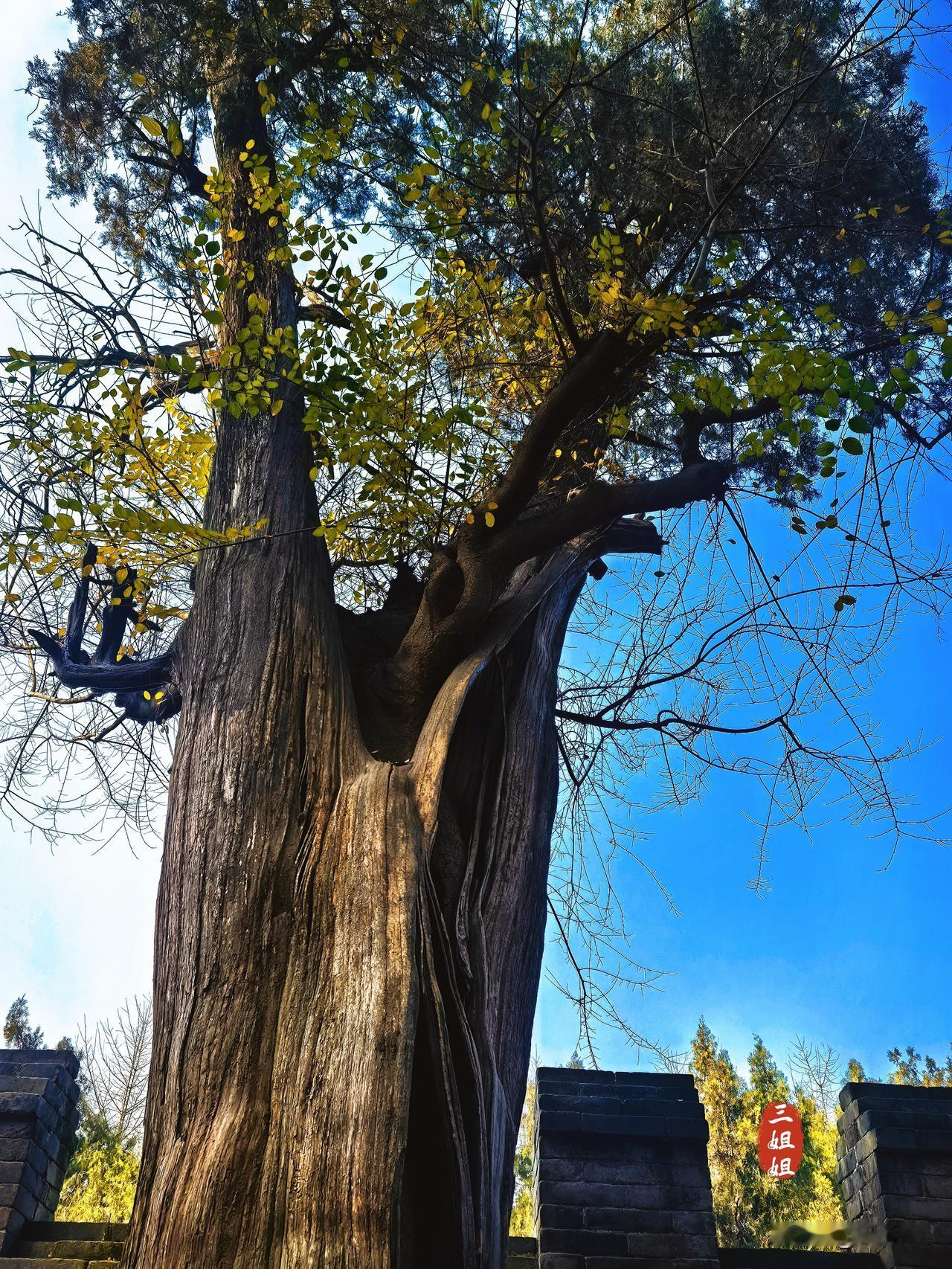 【冬日周口行】太昊陵古树名木堪称一绝,入选全国“最美古树群”。 我到周口游览太昊伏羲陵,除了对古建之美赞叹不已,千奇百怪的古树名木也给我留下了深刻的印象。 太昊陵古树群占地面积约400亩,群内树木以松柏类为主,形成造型奇特、参天耸立、古柏夹道、遮荫蔽日多种景观;古树的部分树龄竟超过了1000年。冬日生活打卡季