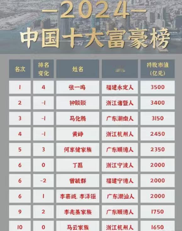 中国非隐形十大富豪榜,全是南方人! 事实证明,搞实体的还是拼不过搞软件的。 据说中国还有非常多大隐形富豪,那些人的财富用富可敌国一点都不为过,他们处事低调,每年会花大量的钱,来避免被舆论捕捉和报道,他们会分散自己的财产,甚至是刻意隐藏,普通人更是连他们的衣角都无法触及。 但是他们也会有很多投资,大多数用匿名的形式,如果能得到这样的人投资,基本上都是稳了。 在听泉鉴宝有一期节目里,如果是真的,将颠覆人们的认知,一个二代和听泉连麦,看的是自己家的金库,镜头所及之处皆是黄金,都堆成了山,摞成了墙,这样的场景,也就是在成龙大哥的电影里见过吧。 还有那些家里开私人博物馆,里面的文物比一般的开放博物馆都丰富很多,随便拿出来几件,都可能是别人的镇馆之宝。 西方有犹太家族,我们国家也可能有这样的传世家族,比如李鸿章给他的子孙后代留下的财富,几代人都花不完!