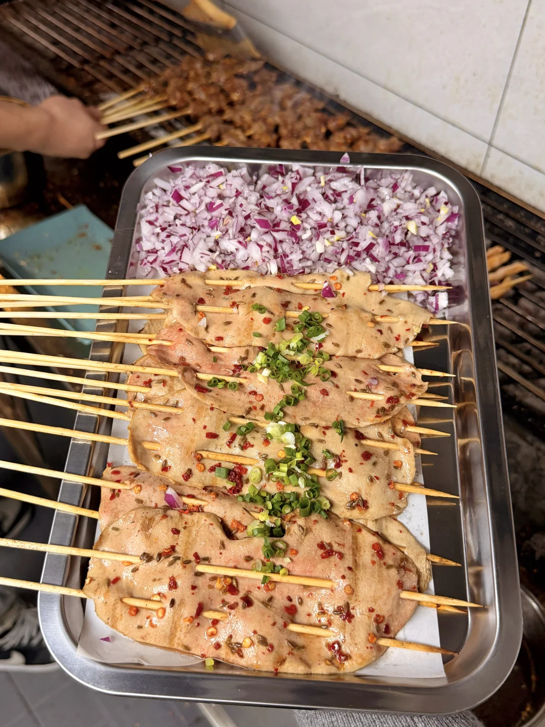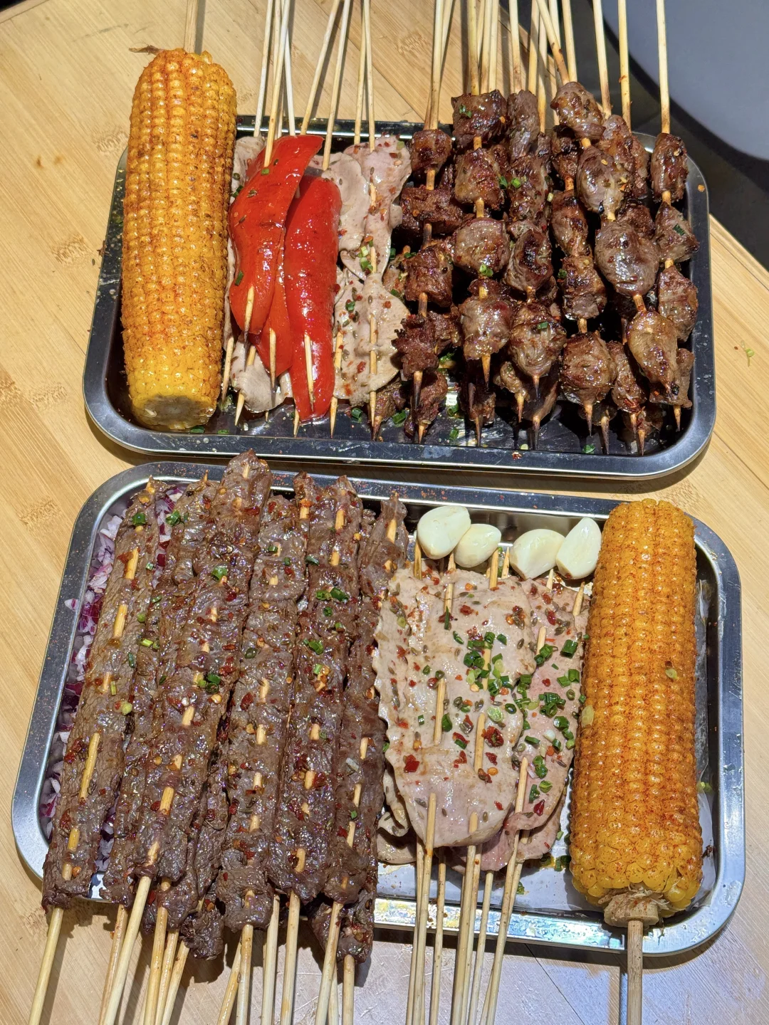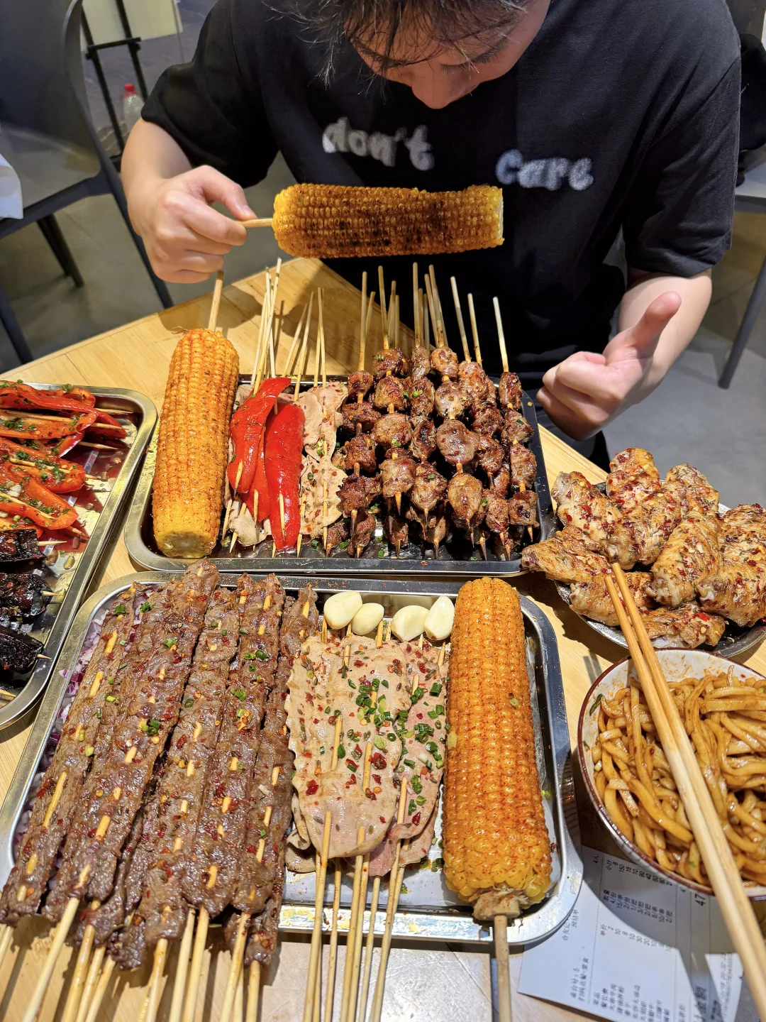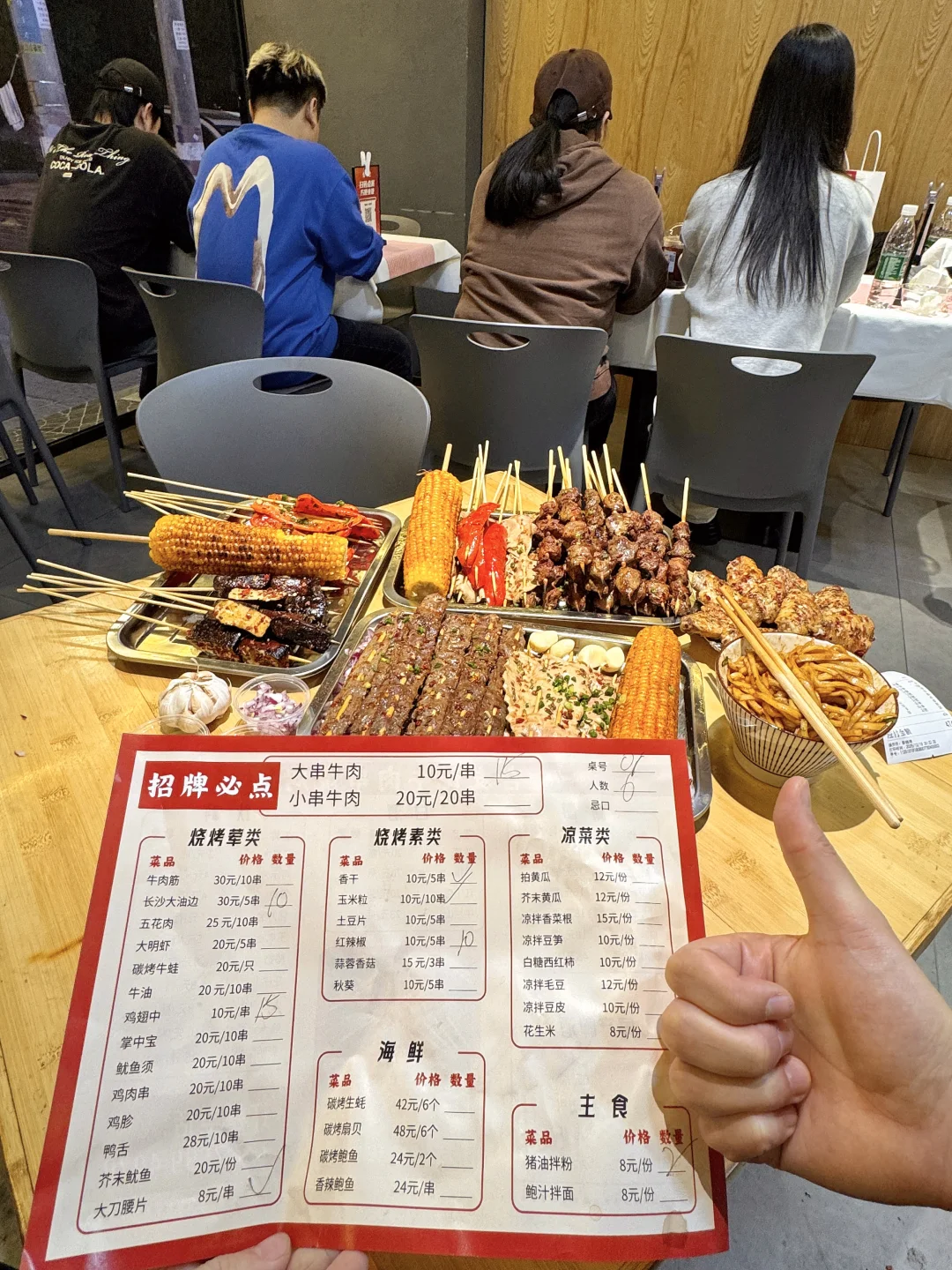 这周来吃第三次了!价格便宜份量足! 真碳烤,真的好吃!叫:合友记,就在南湖路地铁口!每次必点大片牛肉、烤鸡翅、玉米都吼吼吃!