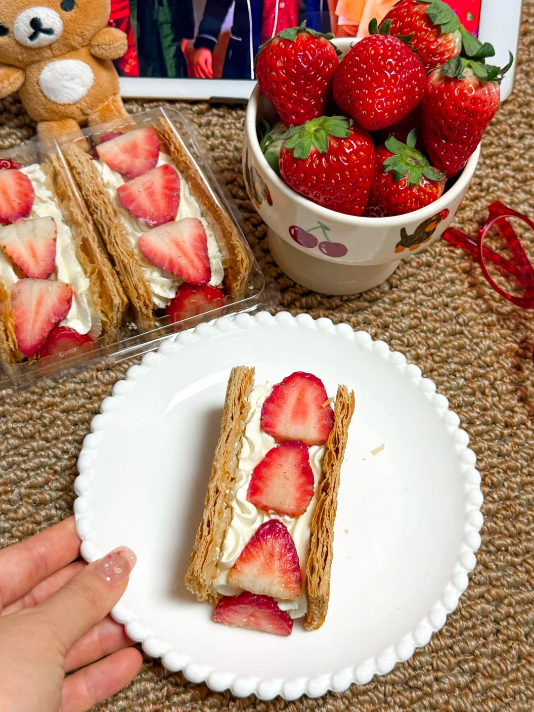 超盒算NB挖到了我的草莓真神 谁敢想草莓拿破仑蛋糕和糯糯草莓大福 治好了我的圣诞病!!! 好吃到跺脚,而且价格超感人了! 🍓红颜草莓拿破仑蛋糕 29.9r 必须从它开始夸!酥皮脆到掉渣 搭配轻盈的奶油和新鲜草莓片 酸甜平衡得刚刚好 一点不甜腻 🍓糯糯草莓大福 19.9r 软糯外皮能拉丝,内馅是一整颗草莓! 新鲜草莓草莓搭配甜甜奶油,冰凉丝滑 一盒4颗,和小伙伴分享刚刚好 这才是圣诞节该吃的甜甜草莓嘛*.❅ 草莓季的我每一天都很幸福!!