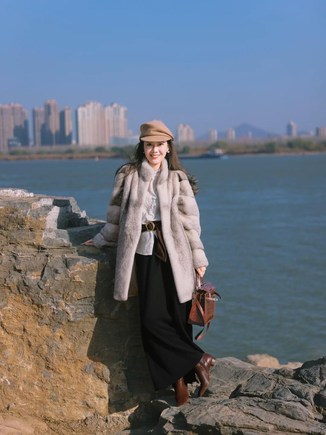 很多人喜欢穿皮草,是因为其保暖性非常好,而且皮草外套自带贵气感,非常适合冬天! 今天分享的博主woods木子这套冬季穿搭,内搭白色衬衫,用棕色腰带勾勒出腰线,下半身搭配黑色半身长裙+棕色短靴,皮草外套随意一裹,有一种漫不经心的富贵感。 挑选皮草外套,款式是关键。 短款利落俏皮,适合小个子女生,能拉长腿部线条;长款则气场十足,走路带风,高个子女生驾驭更出彩。颜色上,经典黑、棕百搭耐看,亮色系吸睛但考验搭配功力。 搭配时遵循“上松下紧”原则。内搭选简约纯色针织衫,凸显皮草质感。下装搭配紧身牛仔裤或短裙,展现腿部线条,再配上一双短靴,增添时尚感。 若想更显优雅,不妨如博主一样,搭配一条长裙,再拎个精致手包,轻松打造出冬日里的奢华名媛风,让你在人群中脱颖而出。