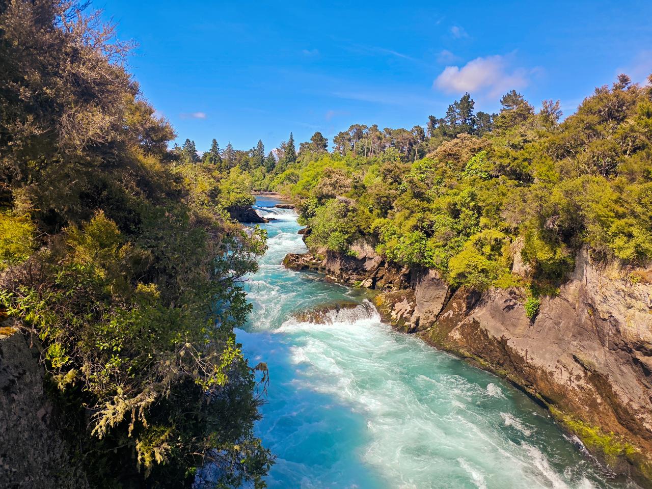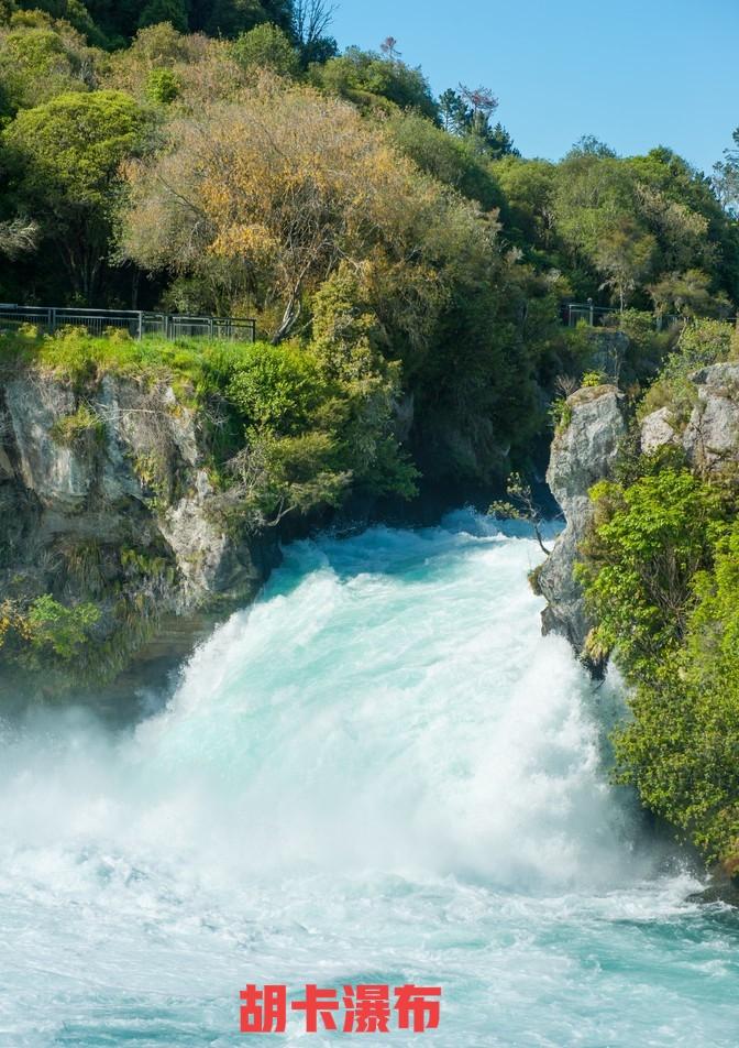 洗润灵魂的胡卡瀑布 离开罗托鲁瓦,我们的目的地是陶波湖,在去陶波湖的路上,女儿说进入陶波湖以前先欣赏一下胡卡瀑布的美…… 胡卡瀑布位于怀卡托河上,距离陶波湖不是很远。怀卡托河是新西兰最大的河流,也被称作新西兰人的母亲河,它也是陶波湖水的主要来源之一…… 胡卡瀑布是一处自然景观,这里没有任何管理人员,停车场就在怀卡托河的旁边,只是茂密的丛林挡住了河流的视线,当我们走上怀卡托河的石桥时,被这淡绿色的河水惊呆了…… 站在桥上,河床里淡绿色的波涛,白浪翻滚,水质似玉,温润迷人,真想不到自然界中还有这么美的河流…… 过了桥,向下游走200米左右就是著名的胡卡瀑布。胡卡瀑布形成原因是河水在经过一个坚硬的火山岩溪谷时,从百米河床收缩到11米,水流压力瞬间增大,再从12米高的断层处冲泻而下,形成了美丽壮观的胡卡瀑布…… 胡卡是毛利语,意思是泡沫,由于这里的水质含有多种矿物质,在阳光的照射下呈淡绿色,加之水流湍急,形成这么多白色的浪花,就像泡沫一样,毛利人就直接起名为胡卡瀑布…… 胡卡瀑布的美,美在它的汹涌澎湃,美在它的纯洁如玉,真的好想把自己的灵魂拿出来,在这里好好地洗润一番……