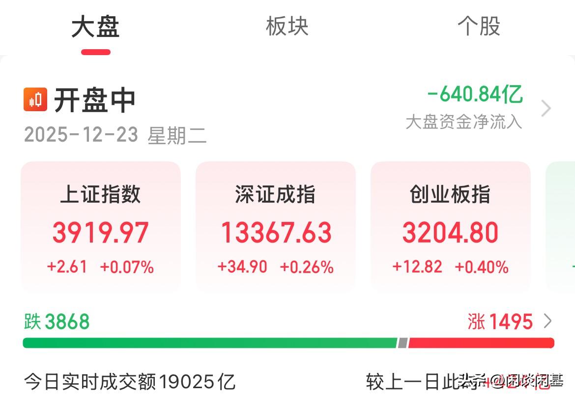 1.9万亿,放量200多亿,指数尾盘回升,集体收涨,上证五连涨,创业板涨幅0.4%,寒武纪大涨超4% 指数尾盘回收,算是连涨两日了,上证也走出了5连涨的节奏了,能不能站稳3900点了,还得看科技, 消息说光刻机的事,半导体设备算是连涨两天了,新能源今天涨超1%,主要带头大哥宁德时代涨幅1.68%,说要投资新的能源公司, 军工板块今天领跌超2%,信创、机器人跌幅超1%,商业航天跌幅1.75%,消息称回收火箭未取得预期成效,涨多自然要调整一下, 离2026年也近了,没有几个交易日了,希望能有个好成绩啊。