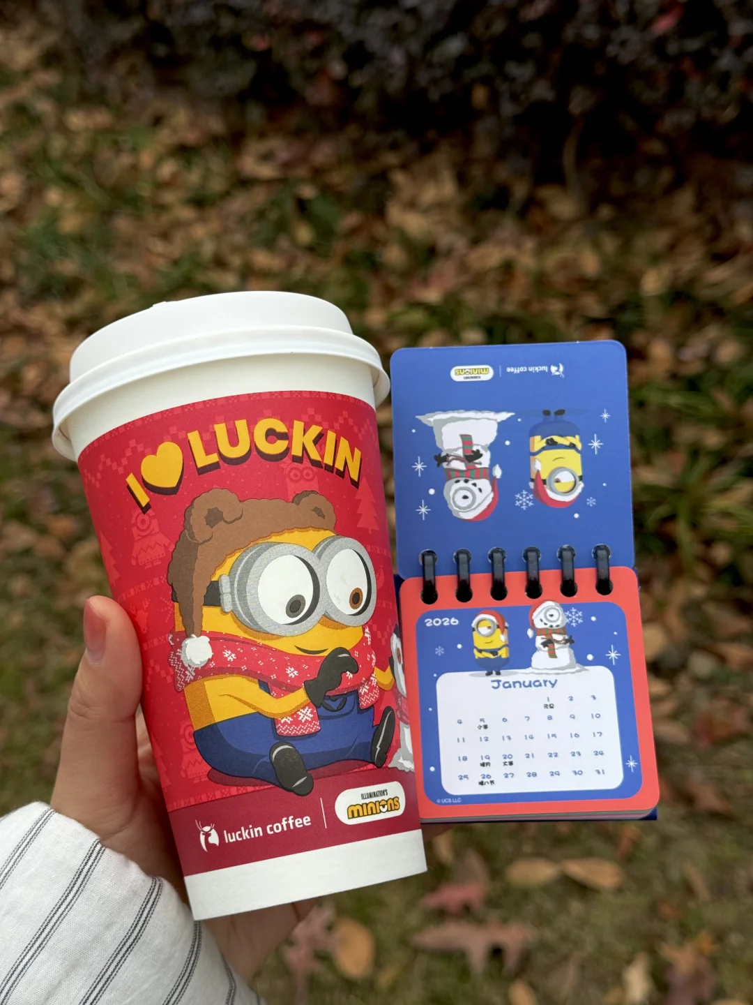 🍐冬季限定!大冬梨子美式!都听我的选深烘,鲜甜果味配轻盈美式,梨味和咖啡味都在线!入口润润的!! 🎄好消息!!瑞幸费尔岛拿铁升级回归了!!!与冬日适配度100%!!鲜萃现泡红茶作为基底,马斯卡彭芝士➕真实太妃酱,奶味叠加焦糖香不会腻,热饮微甜正好!! 🍎圣诞适配的苹果C美式可以选深烘了!含阿克苏产地苹果和NFC苹果汁,苹果香味hin浓郁!! ❄️小黄人联名杯子可爱又温暖,圣诞冰箱贴和周边迷你日历都jujuju可爱!!都送给好闺闺哈哈哈哈~