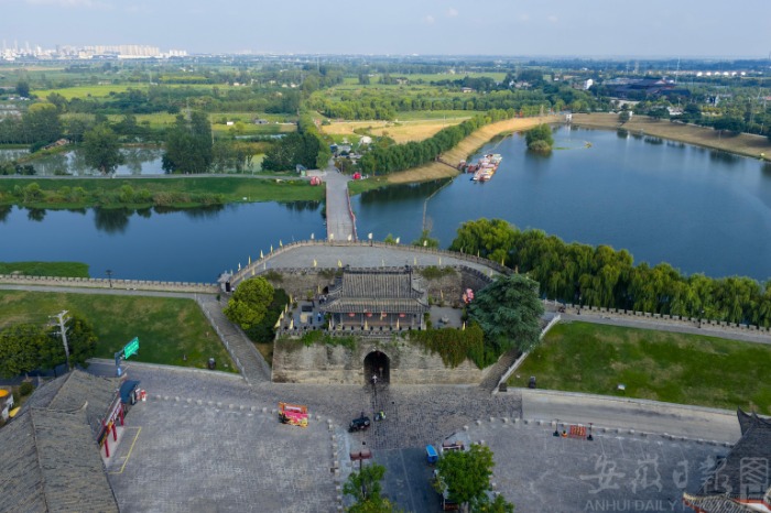 航拍的淝水古战场——寿县古城墙宾阳门。(安徽日报资料图)