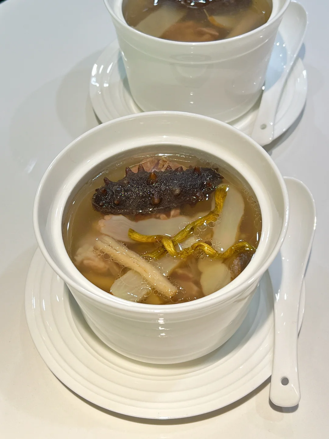 3️⃣把泡发好的海参放进炖盅,再炖30分钟,放盐调味即可。