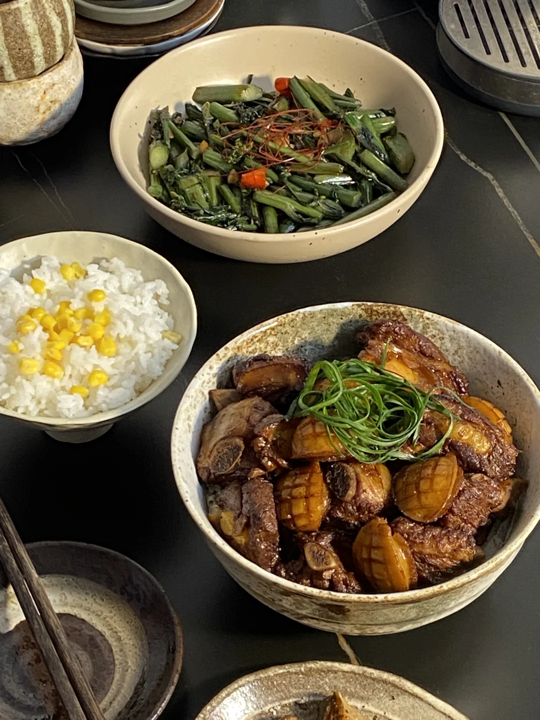 简单一顿家常菜,还是爱吃的鲍鱼配小排,做了红菜苔,这个越炒越好吃!今天的菜谱如下: