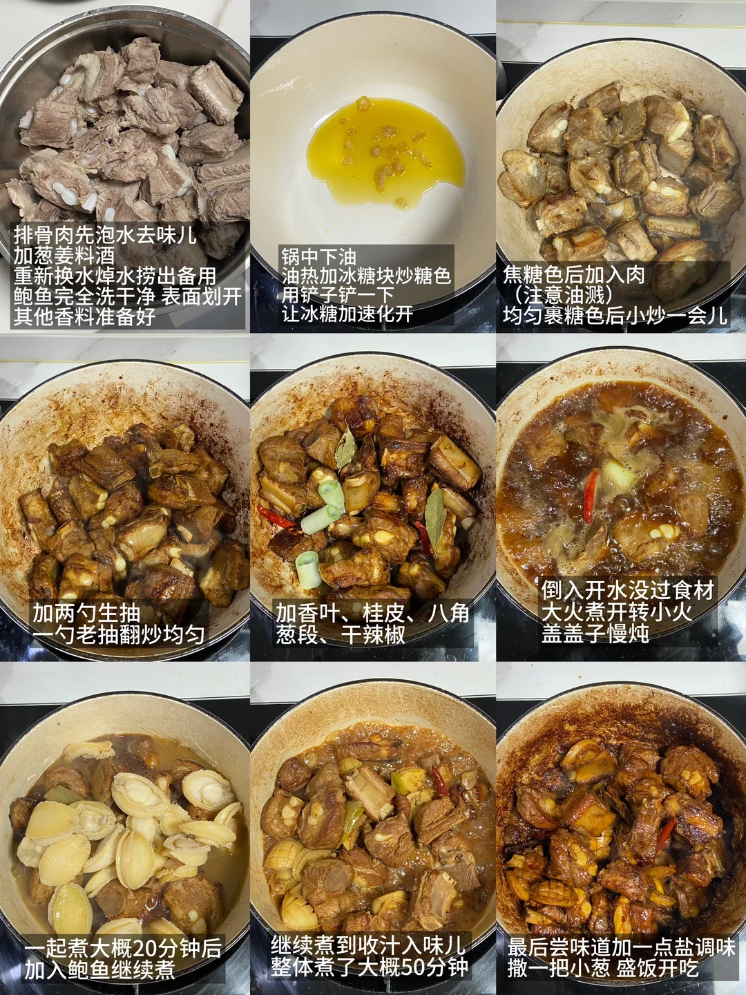 肋排2条|鲍鱼|葱|姜|香料|干辣椒|冰糖