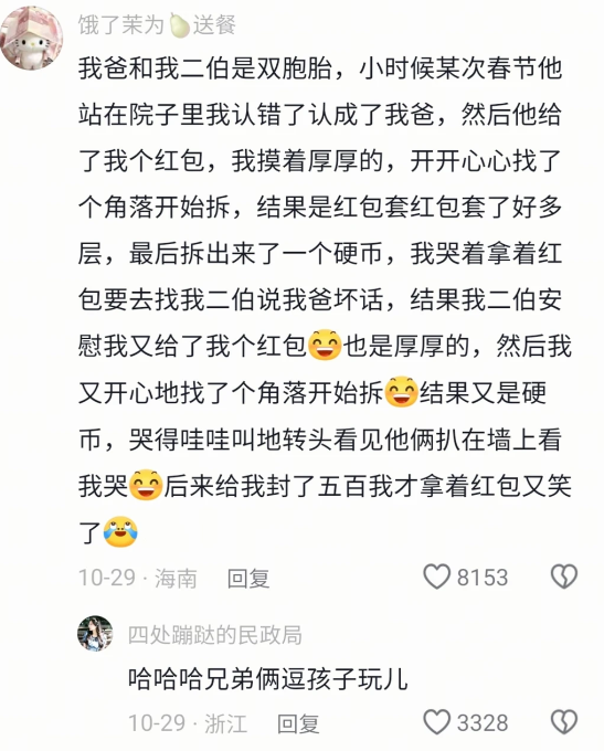 这前后的红包好像都是二伯给的