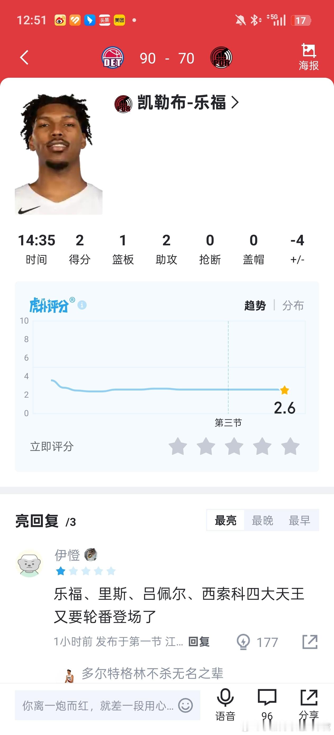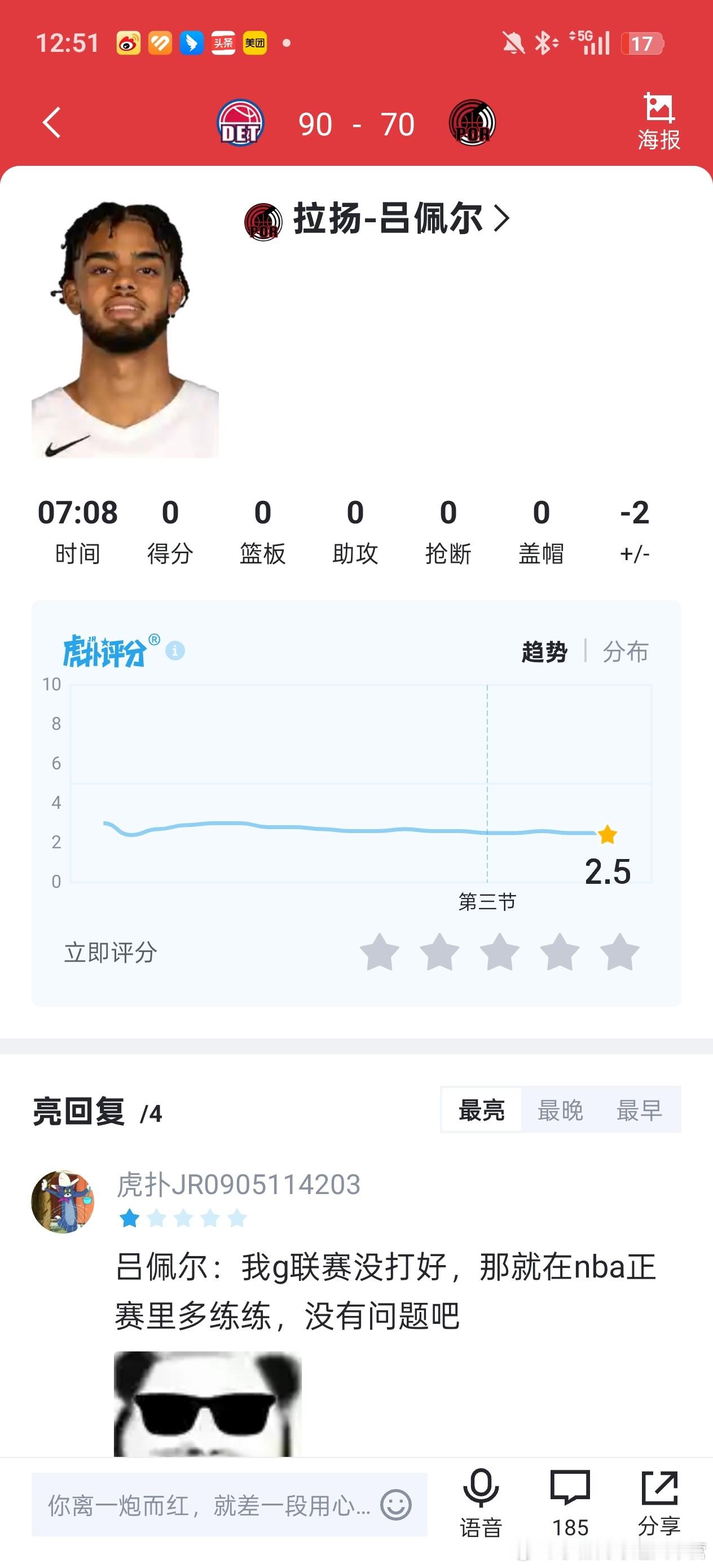风清气正 1 2025-12-24 20:22 篮球课堂——阿摊 与 里弗斯—— 互为劫数——(1)现在只剩下两个群体还会认为阿摊是无所不能的!一个是特殊群体,一个是舔媒体;前者是因为无知,后者是因为无良——其他人,包括球队管理层、教练、阿摊自己的经纪团队,都知道阿摊这个泡沫正在濒临破灭!——(2)但是,阿摊(团队)绝不甘心以一种爆bi 的方式退出舞台——(3) 休赛季的系列骚操作“偷鸡不成蚀把米”;10月份,阿摊干脆诈病不出,想整球队一个措手不及——没想到东子和小李子带队打得风生水起——东子坐稳老大、小李子抢占副座——(5)阿摊被剥夺了“持球大核”,成了第三持球手,只剩下“快攻1打0”之类的汤汤水水续命——八场球过去,场均得分暴跌至14.5,篮板数腰斩,助攻数据还得靠垃圾时间来维持——(8)阿摊慌了手脚!——只好利用小李子伤缺,舍老命抢分!并在与太阳的比赛中,抢了原本属于球队老大 东子的技术犯规罚球、试图抢回球队老大的身份!遭到主教练的喝止——(9)阿摊的团队也急了!赶紧上节目放风,希望将小李子赶去打替补——(10)接下来有戏看了:小李子若暴走,则阿摊必定裸泳、网红蛋破灭!——阿摊若想守住“皇帝的新装”,则必须想方设法做掉小李子!