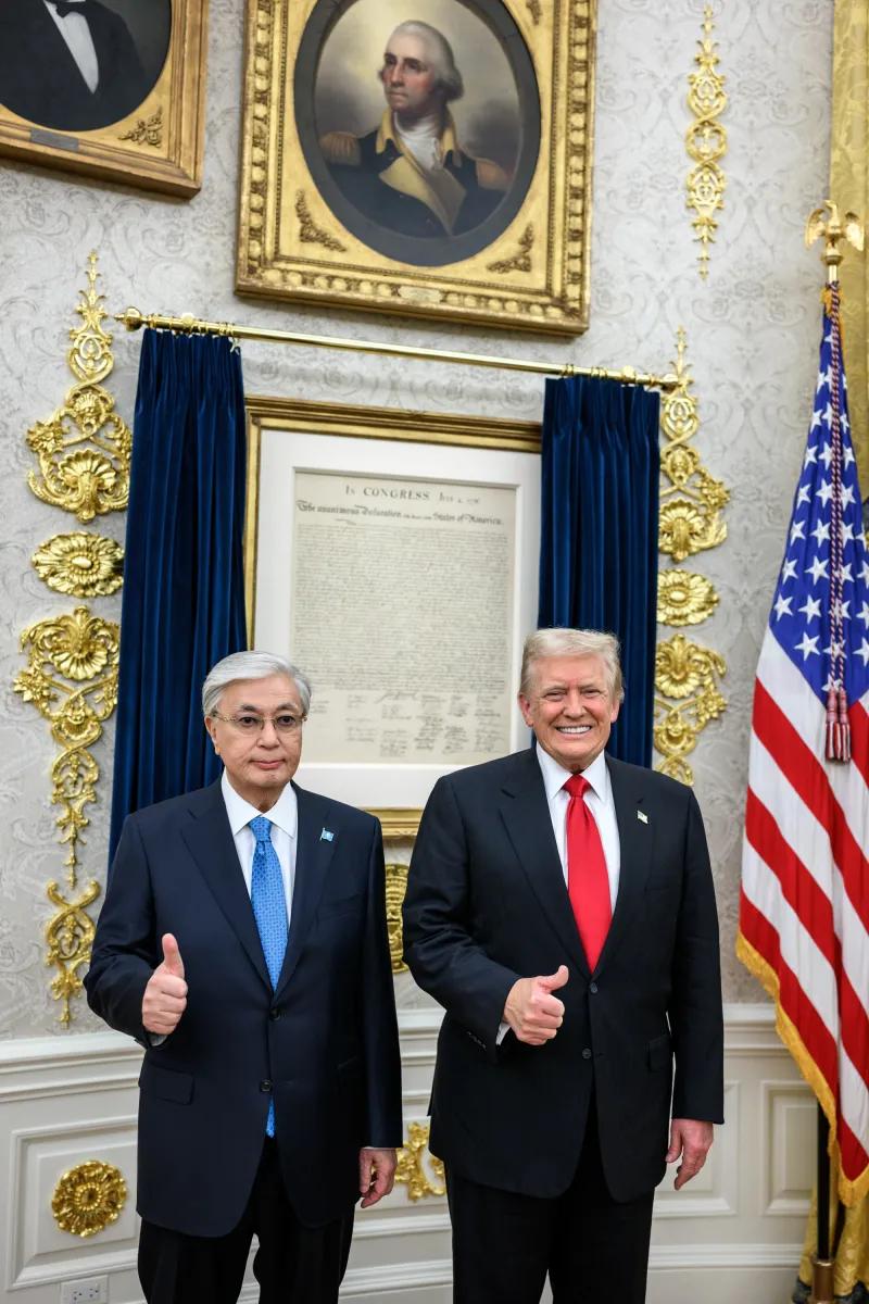 哈萨克斯坦总统托卡耶夫获得的一份来自特朗普的礼物,一顶由特朗普本人亲自签名的白色棒球帽和白宫的象征性钥匙。23日,哈萨克斯坦领导人的新闻秘书宣布了这一消息。 特朗普还送上了热烈的祝愿,并形容哈萨克总统是“一个了不起的人,一位经验丰富的政治家,对国际进程有着深刻而平衡的理解。” 值得说明的是,中亚五国领导人11月6日出席了在华盛顿举行的历史性C5+1峰会上表示,哈萨克斯坦将深化与美国的战略和经济伙伴关系,强调两国合作正迎来变革性时代,并存在数十亿美元的投资机遇。