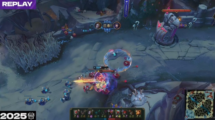 [8:00]下路iG双人组配合越塔强行打出1换2,Photic女枪双杀!随后上路对拼双人越塔越多,Karis发条输出拉满,最终交闪向前配合队友拿下三杀!这两波打完相当是iG打了个3换4!但是Karis发条战绩来到4-0!