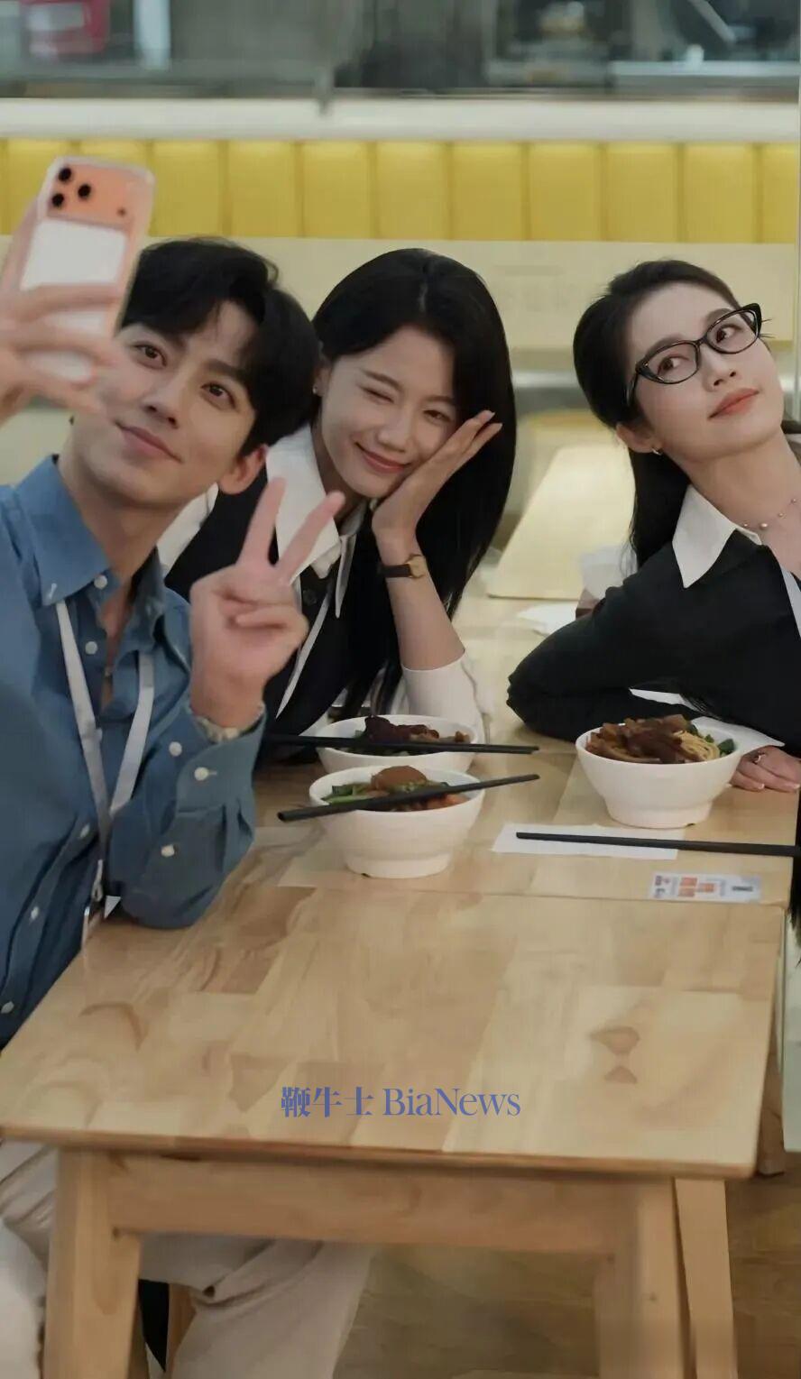 剧集对竖屏景深的运用形成独特叙事语言。导演匡晔从海报的构图中汲取灵感,针对竖屏环境信息承载不足的局限,通过纵深感镜头构建立体空间,让前景角色互动与背景办公环境、城市街景形成呼应,既丰富单个镜头的信息量,又通过角色前后位置关系暗示强弱对比与亲疏远近。