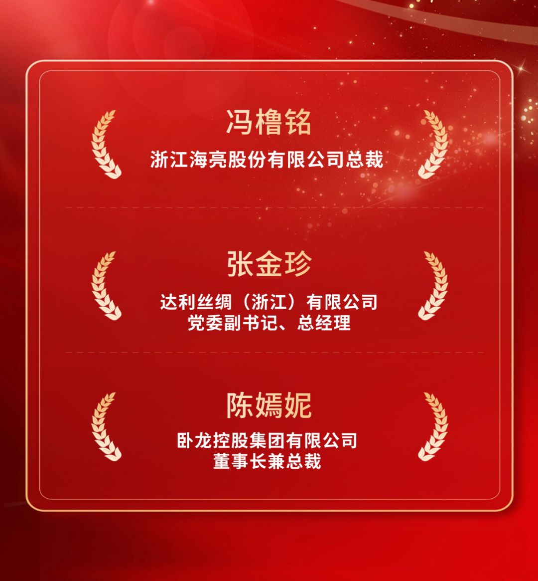 近日,浙江省企业联合会、浙江省企业家协会发布了第二十四届浙江省优秀企业家榜单,全省共49位企业家获荣誉称号,我市3位企业家上榜。具体名单为(排名不分先后,以姓氏笔画为序):