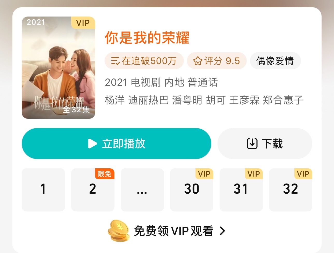 《骄阳似我》开播之后,爱奇艺限免了《何以笙箫默》和《杉杉来了》,紧接着腾讯限免了六集《你是我的荣耀》顾漫迎来大赏,只有优酷在哀嚎