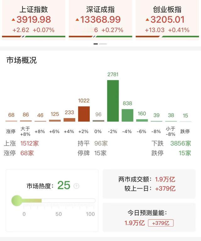 财联社12月23日讯,市场冲高回落,三大指数一度集体翻绿,创业板指盘中涨超1%。今日上市的三只新股悉数大涨,新股N天溯、N锡华均触发二次临停。沪深两市成交额1.9万亿,较上一个交易日放量379亿。全市场近3900只个股下跌。从板块来看,锂电池板块走强,天际股份涨停。液冷服务器午后拉升,英维克、集泰股份涨停。半导体设备概念反复活跃,圣晖集成、亚翔集成2连板。有色·钨概念表现活跃,翔鹭钨业、章源钨业双双涨停。下跌方面,商业航天概念冲高回落,顺灏股份、航天机电跌停。旅游概念多股下挫,曲江文旅跌停。截至收盘,沪指涨0.07%,深成指0.27%,创业板指0.41%。