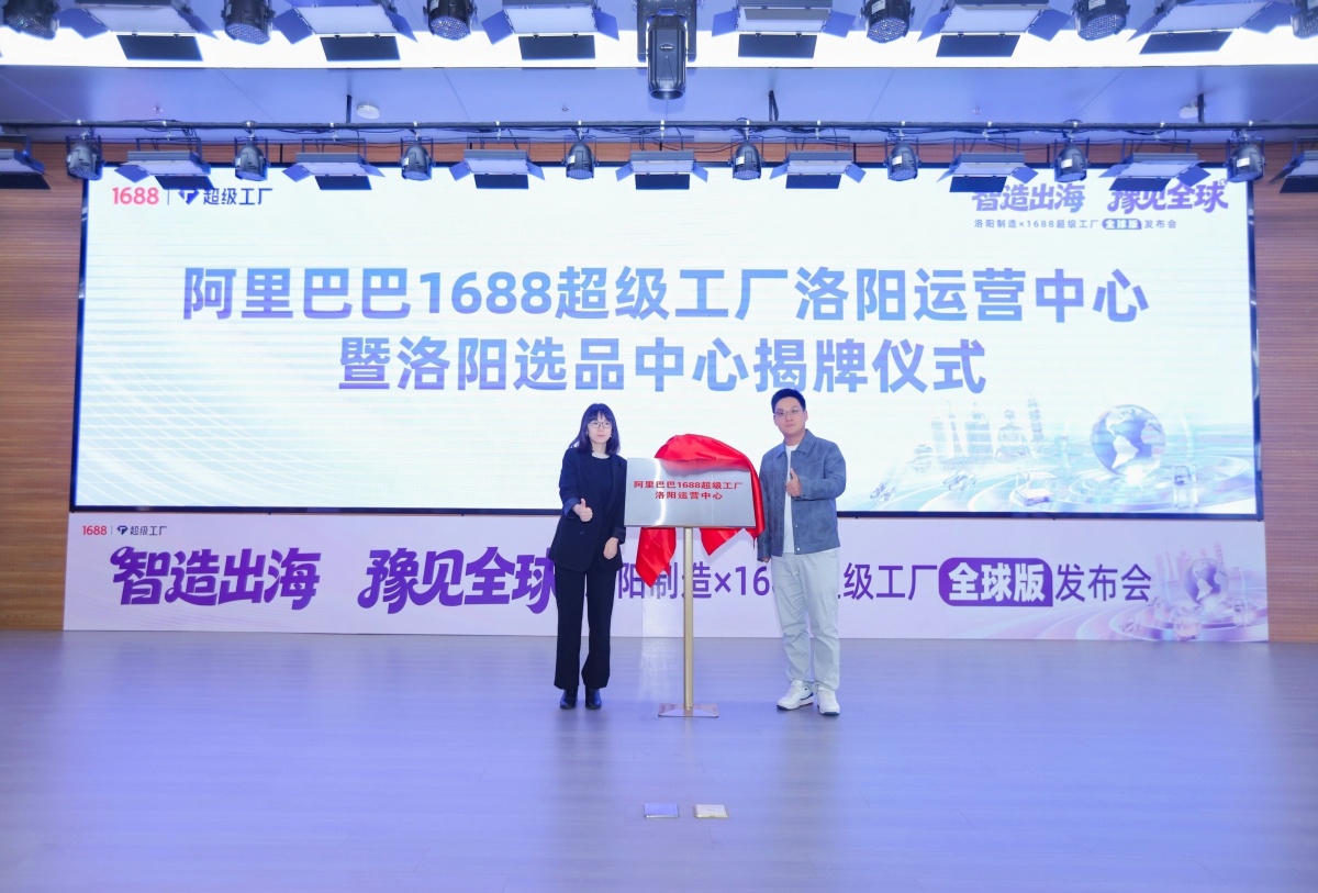 活动现场,“1688超级工厂洛阳运营中心”与“洛阳选品中心”正式揭牌,这两大中心的落地,标志着洛阳制造业数字化出海迈入全新发展阶段,为本地企业搭建起全链路跨境服务桥梁,助力“洛阳制造”加速向“洛阳智造”华丽蝶变。