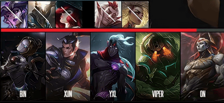 BLG选用:Bin亚恒;Xun赵信;Yxl发条;Viper韦鲁斯;ON泰坦