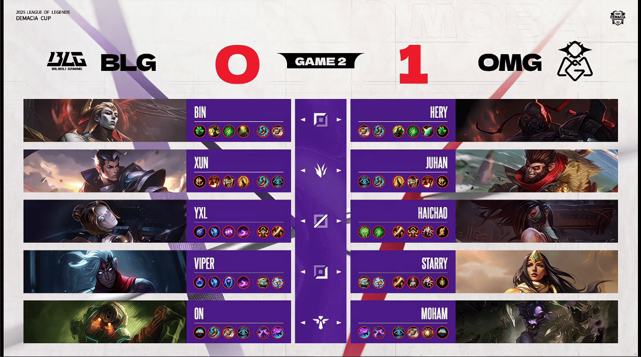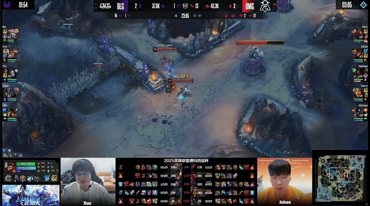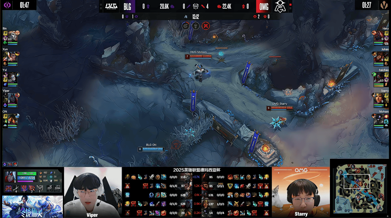 虎扑12月23日讯GAME2:BLG蓝色方;OMG红色方