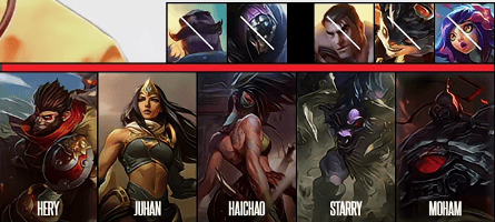 OMG选用:Hery塞恩;Juhan猴子;haichao阿卡丽;Starry希维尔;Moham牛头