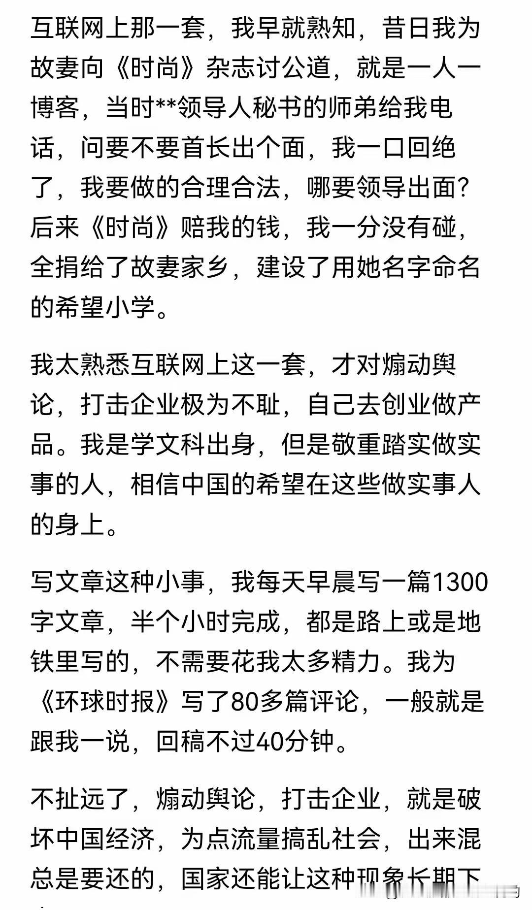项/罗第二轮开撕开始,第一轮项列出几条重点让罗没有招架之力,只有破口大骂,项完胜! 第二轮老项先吹唬自己一番,且可能有大人物秘书相助。 再就是警告罗,我给著名官媒撰文,你再满嘴喷脏就写文章揭穿你,而且还拉上地域优势,罗极有可能被项带动楚人团剿。[笑哭] 老项这次还给罗戴上了打击企业帽子,这一条如果坐实了,罗是很危险的,看瓜群众都等着看罗骂街。[呲牙]